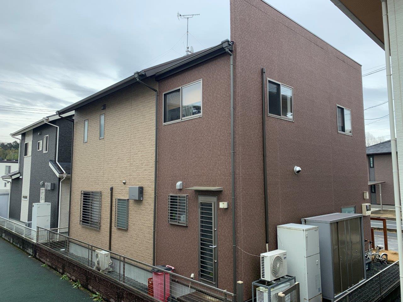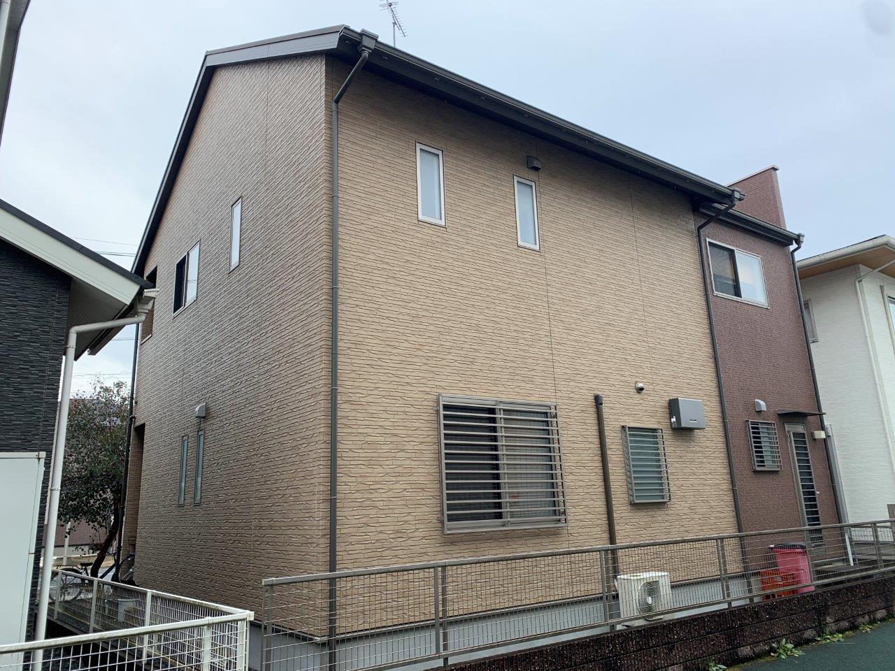 施工前の壁面の写真になります。何色かいろみが入っていますね、単色塗装仕上げではなく多彩模様仕上げを選びになられたので仕上がりが楽しみです。