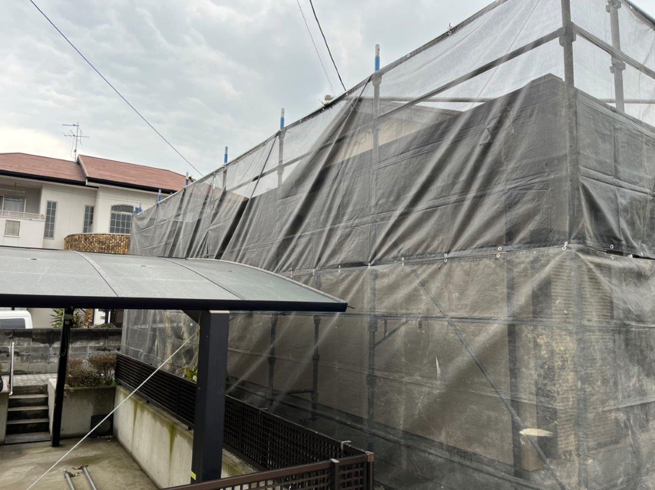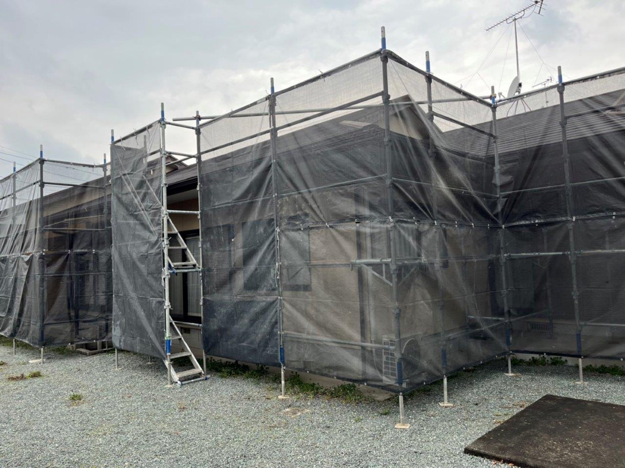 益城町S様邸 外壁塗装 足場の組立、菊陽町Y様邸 施工前の撮影。