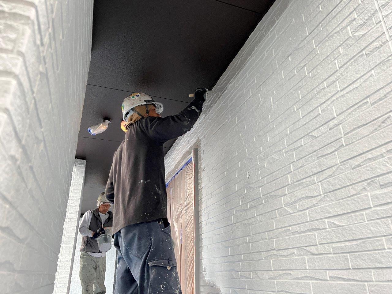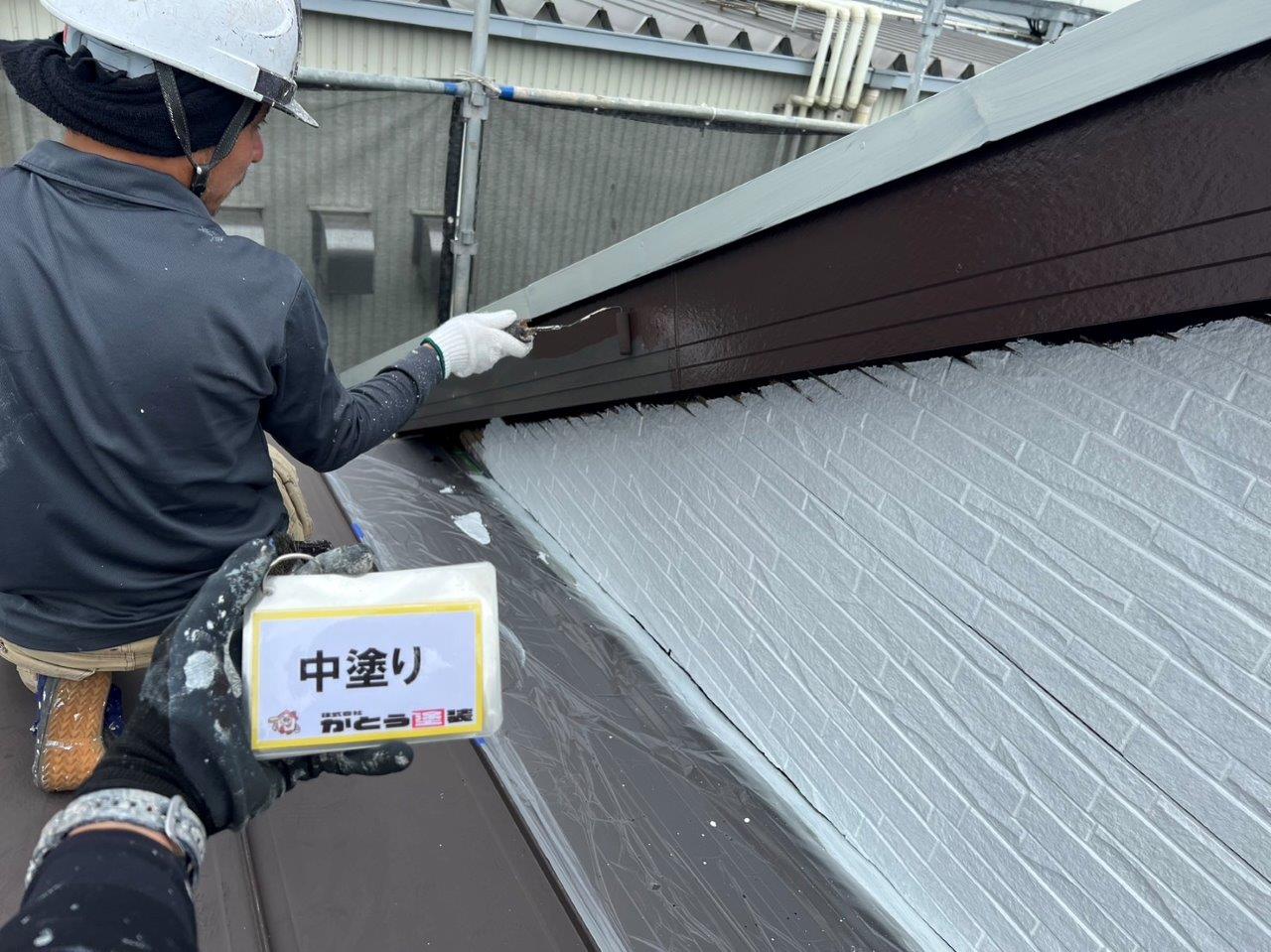 屋根の下塗り状況です。あと一回下塗りを塗装します。合計で4回塗り仕上げです。