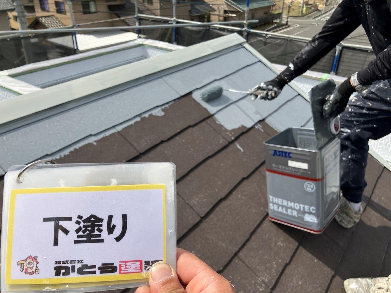 菊陽町Y様邸 住宅塗り替え 下塗り2回目 屋根の下塗りをおこないました。