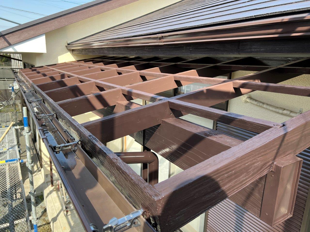 出窓の天端も塗装しております。