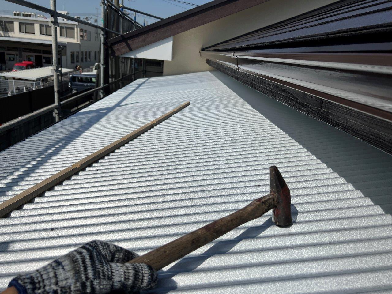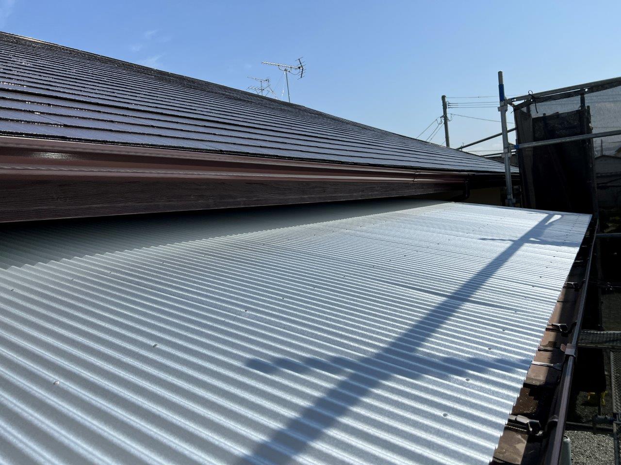 益城町S様邸 屋根塗装工事 ガルバリウム鋼板をとりつけました。