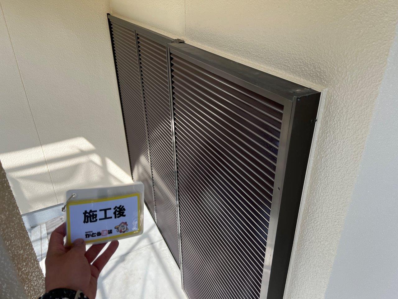 雨戸、戸袋塗装は三回塗りで仕上げました。