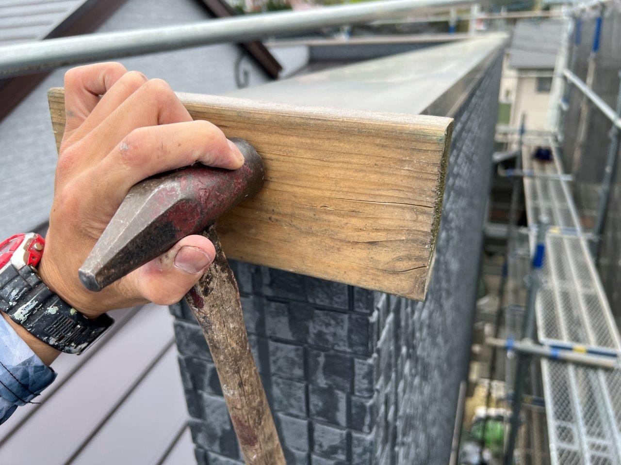 blog 菊陽町Y様邸 外壁塗装 清掃や復旧をしました。 現場情報 壁面を塗る際にネジを取り外してから塗装していたので、完了したのでとりつけました。 笠木が動いていて隙間が開いていたので元に戻していきます。 さんぎをあててから叩きこみます。 入りました。 アルミのガラリをとりつけます。 これでもう大丈夫です。 室外機の台も動かしていたので元の位置に戻してからネジを取りけてました 0120-659-976 [受付]8:00~20:00 [定休]元日のみ メールでお問い合わせ 前の記事 次の記事 一覧へ戻る