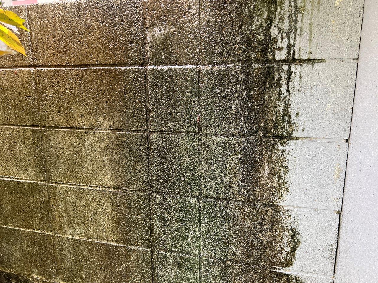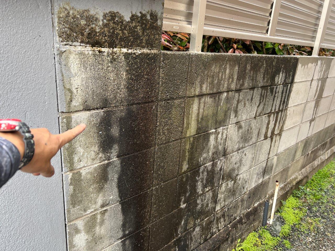 ドレンがなく排水の雨水は垂れ流しの状態でしたので、このように塀も劣化が深刻な状態です。