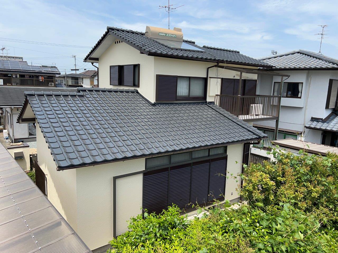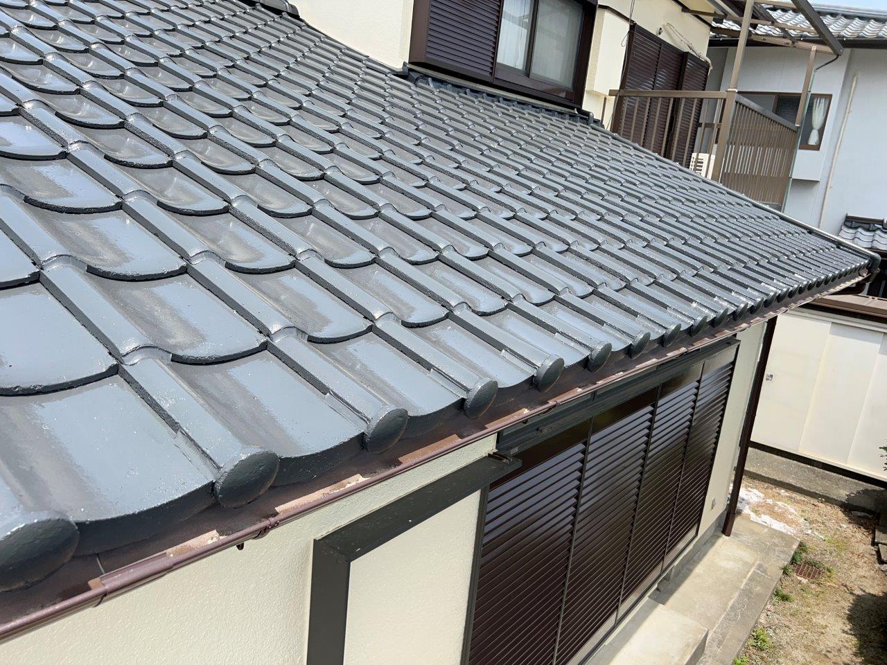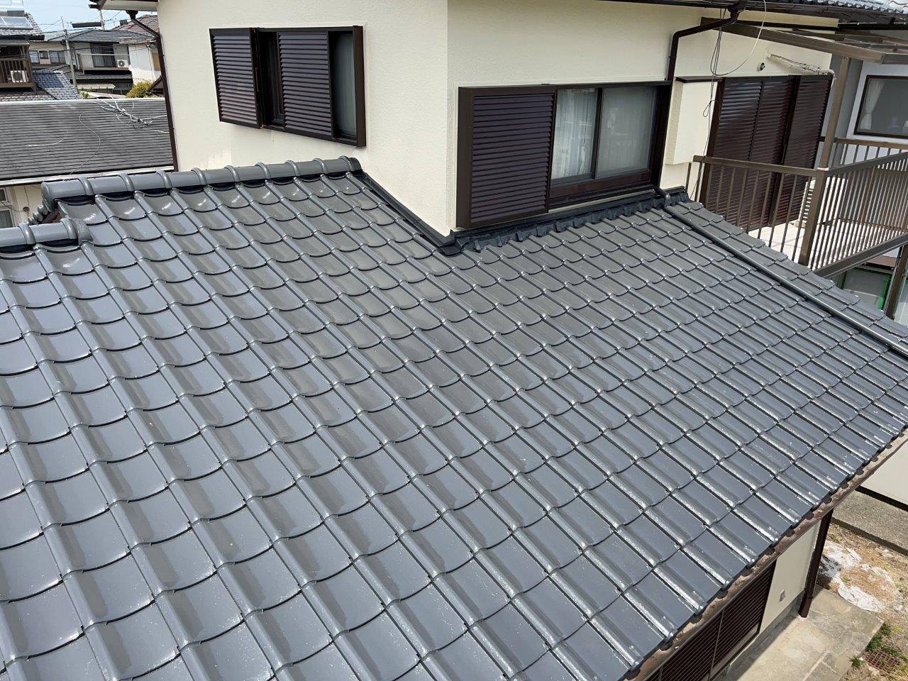 屋根も綺麗に仕上がっております。築40年の住宅ですが新品の瓦を葺き替えしたように綺麗になっています。