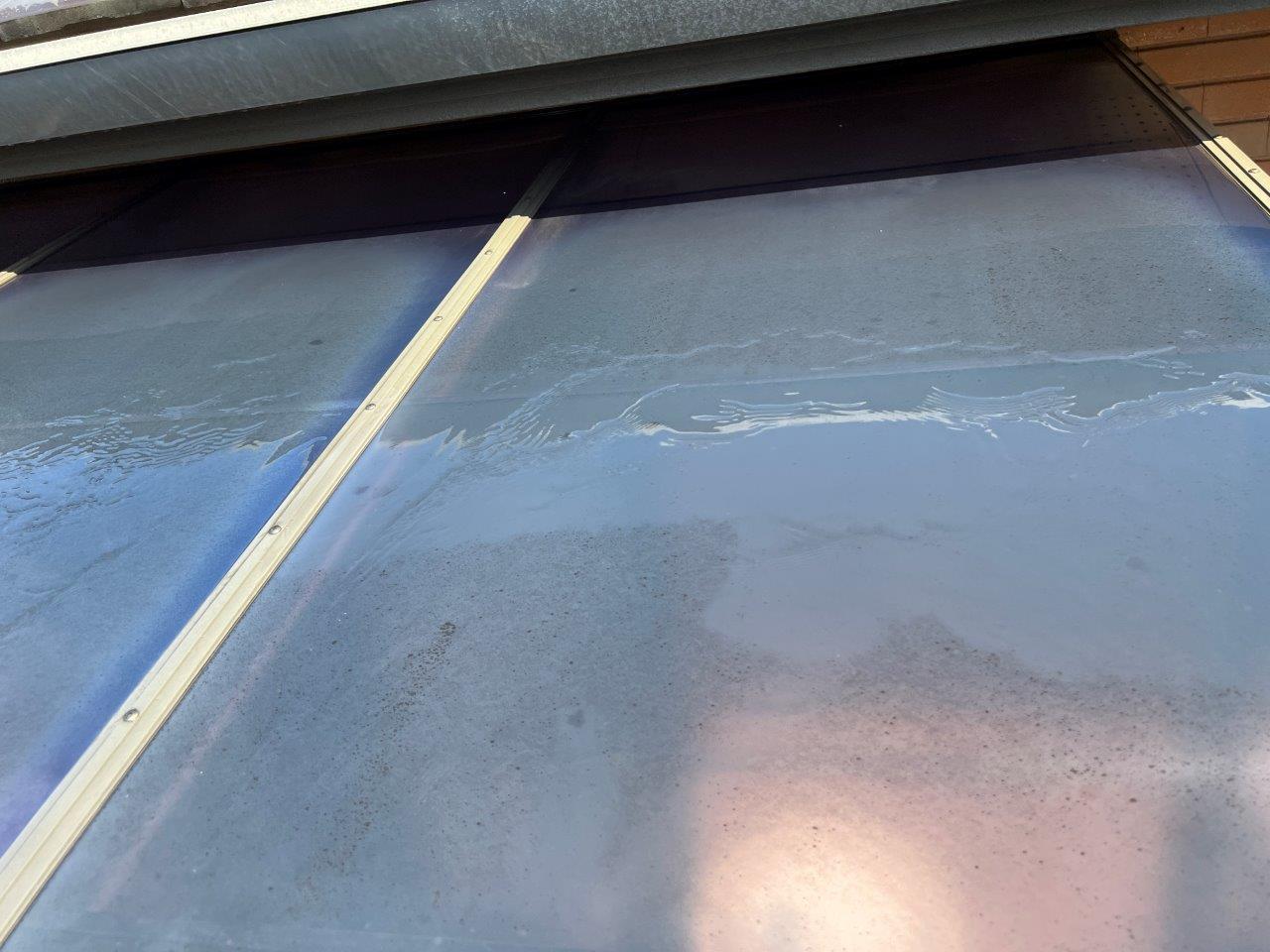 足場の組立前にテラスの屋根の板をはずしにきています。