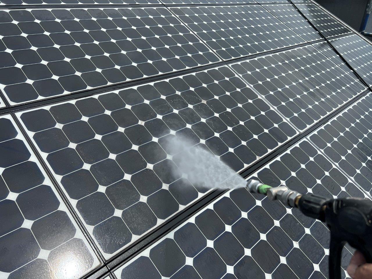 太陽光パネルのところにハト除けのあみが取り付けてあります。