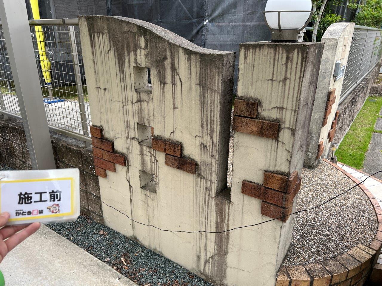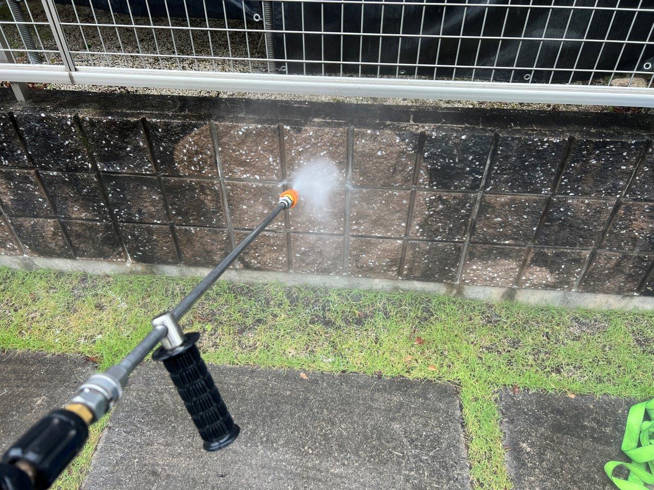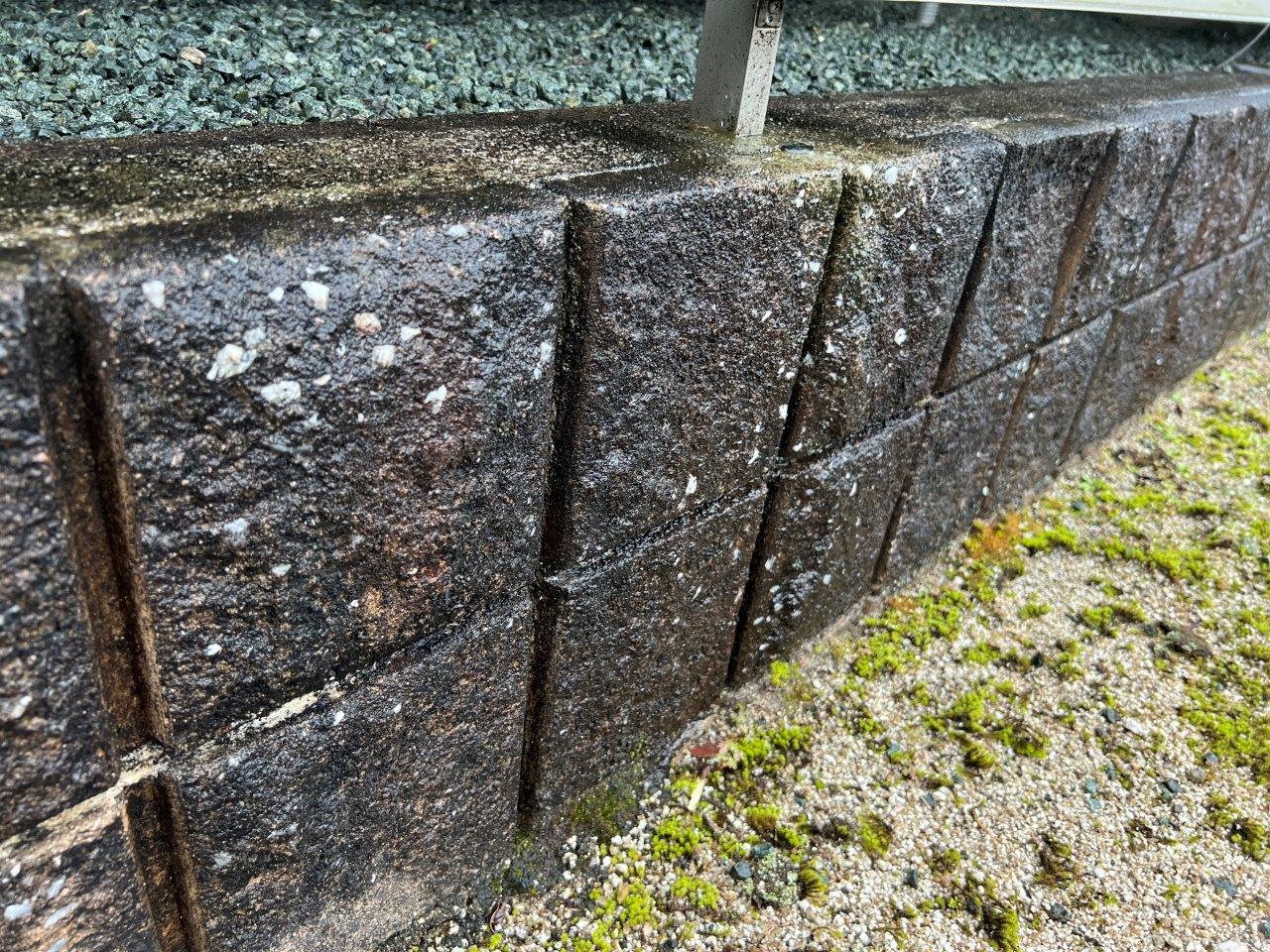 外柵の高圧洗浄もしました。こんなに汚れやコケなどが化粧ブロックについています。
