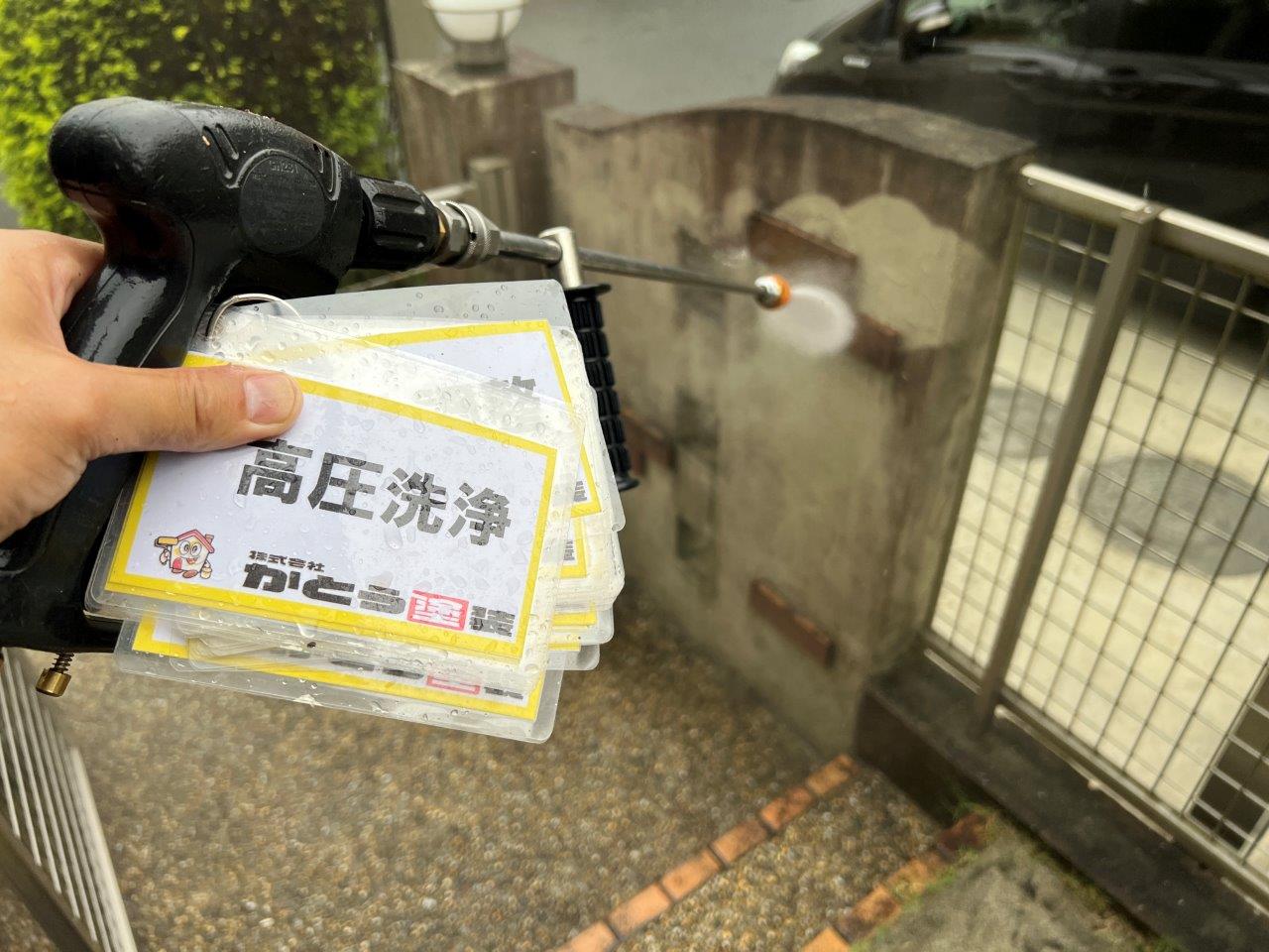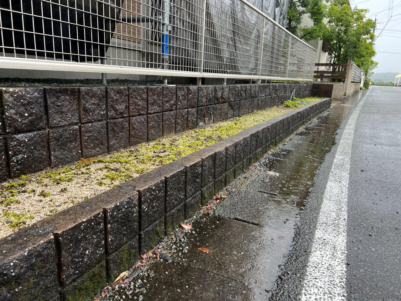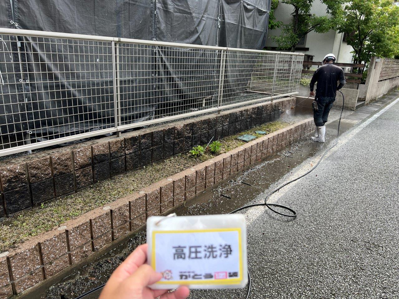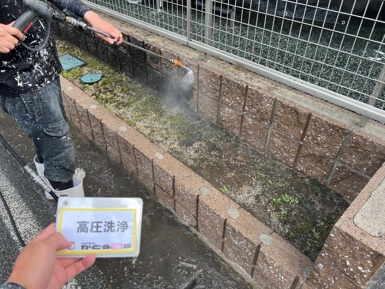 外柵の高圧洗浄もしました。こんなに汚れやコケなどが化粧ブロックについています。