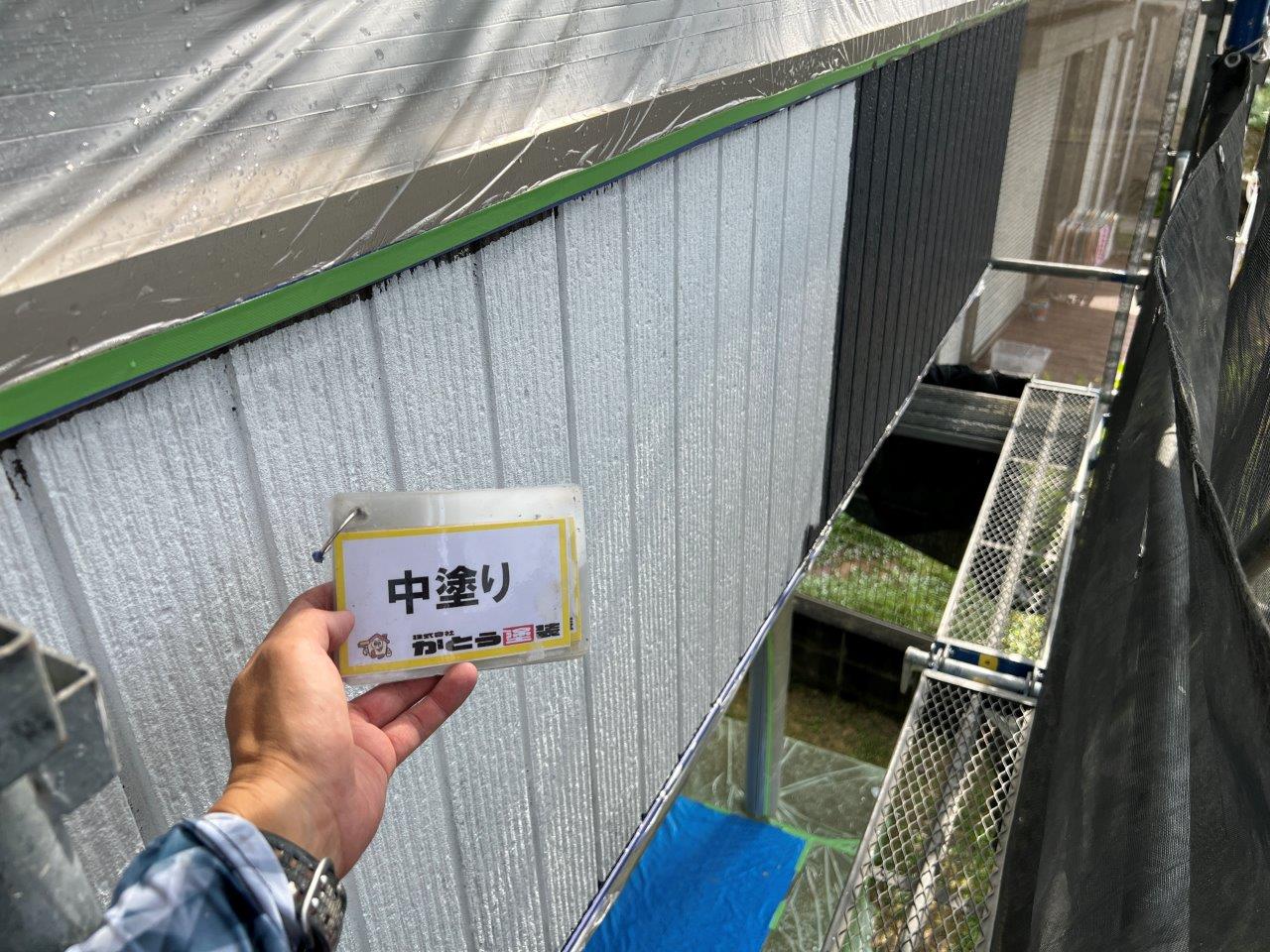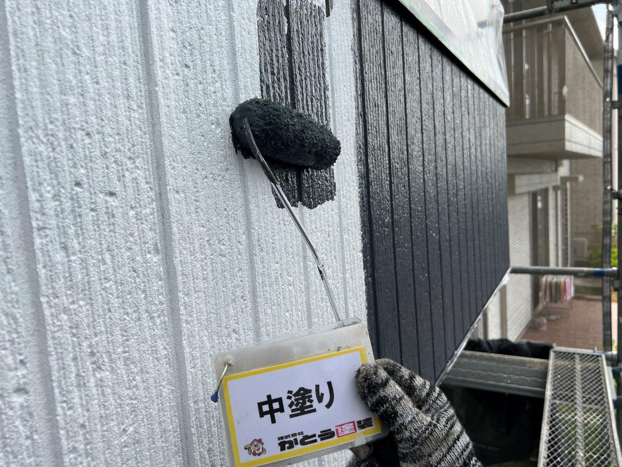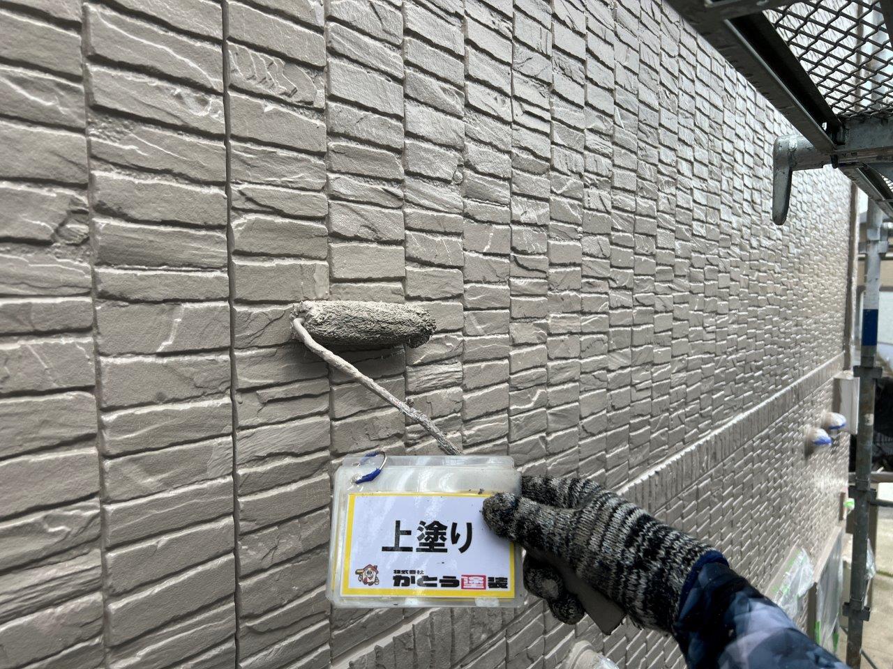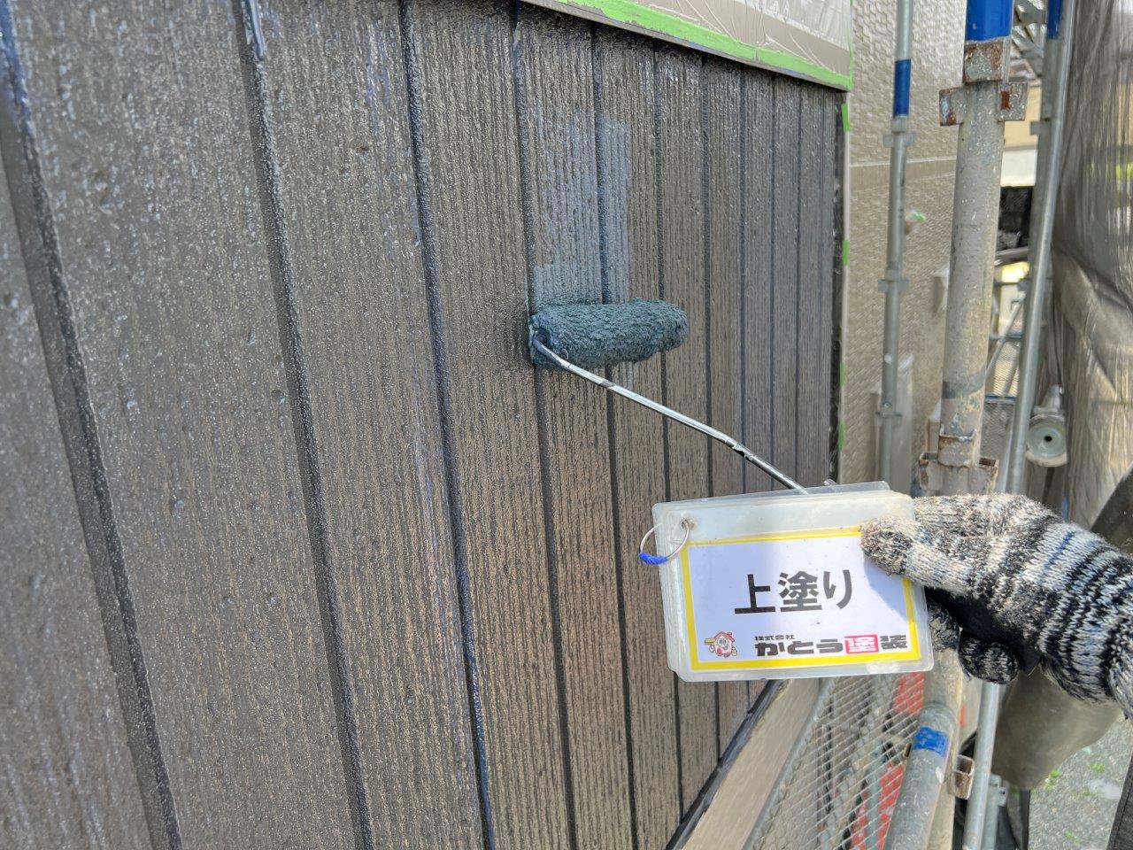 外壁塗装 上塗り状況です。