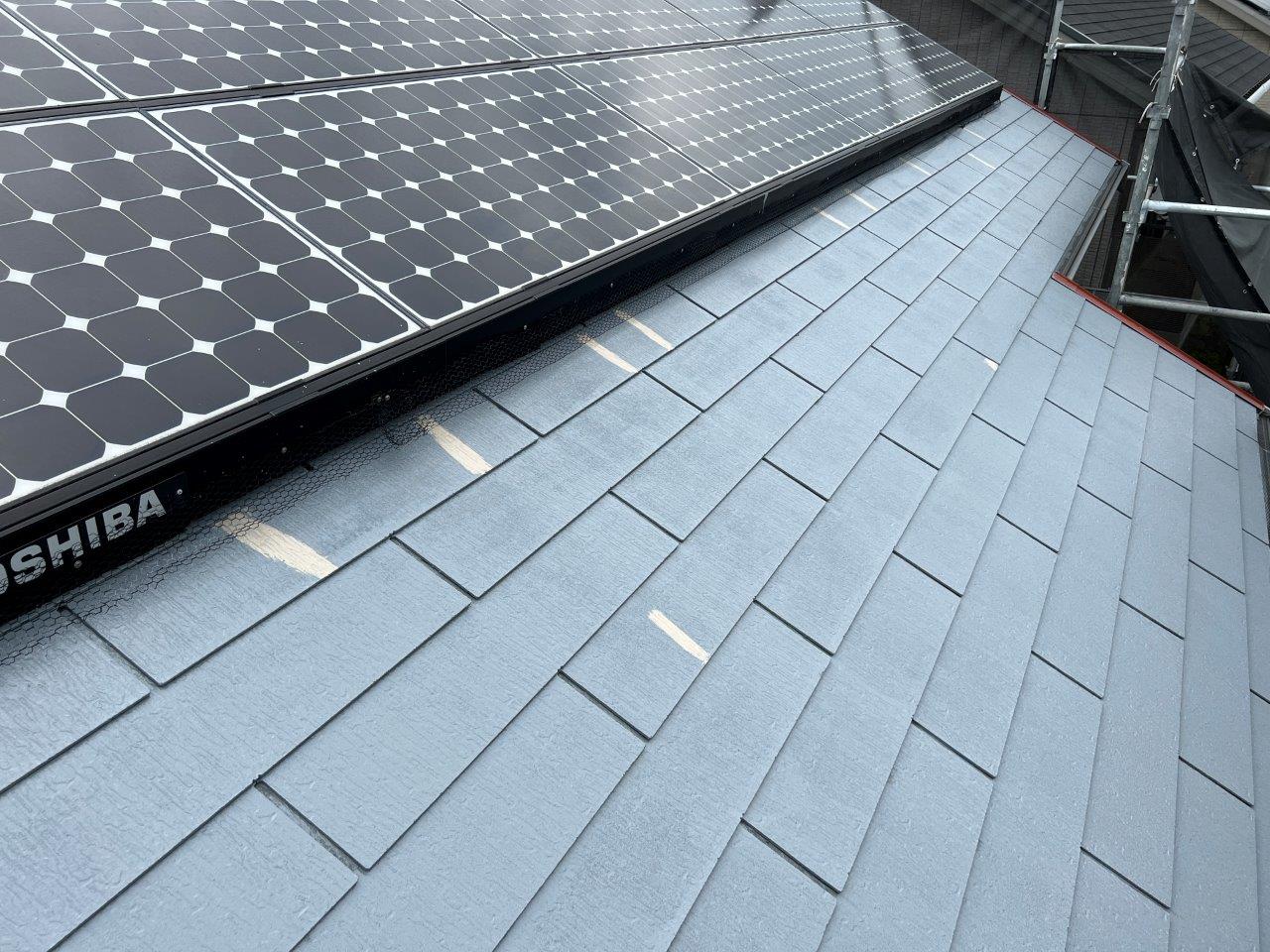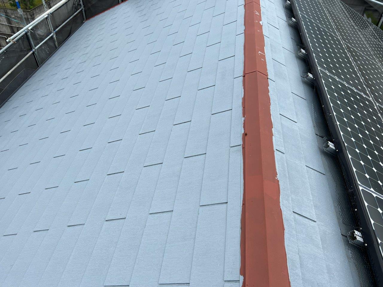 そもそもの下地がノンアスベストなので脆弱なためこのようにひび割れ箇所が存在します。三回目の塗替え工事はこのての屋根はやめたほうがいいです。綺麗にならないからです。葺き替えか金属屋根をはるなどされたほうがお家のためにはいいです。