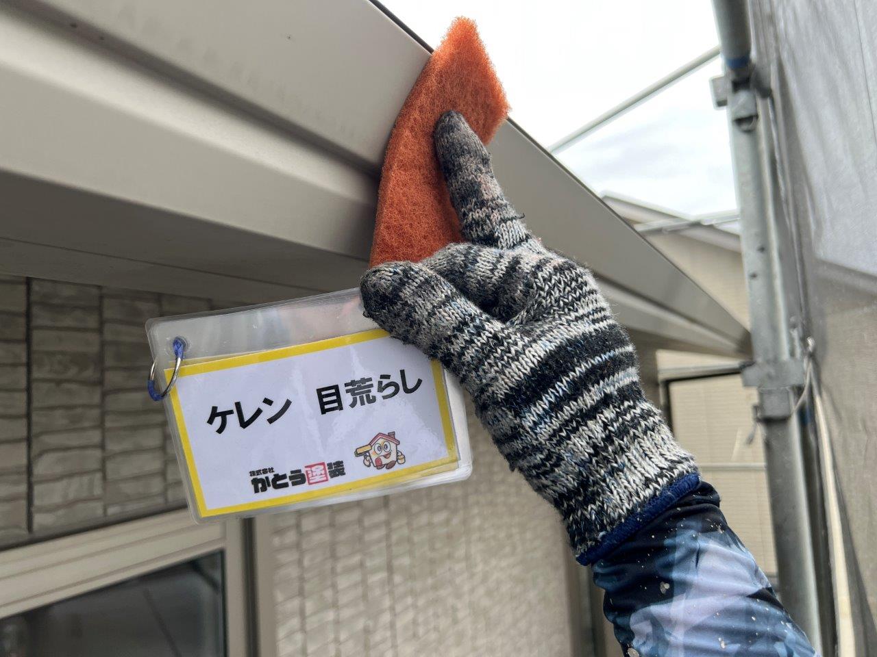 鉄部や室外機のカバー、シャッターボックスのケレンをしました。