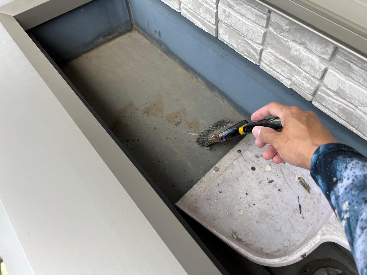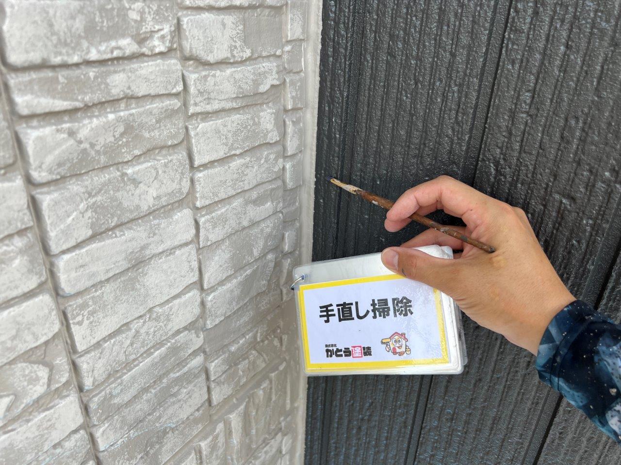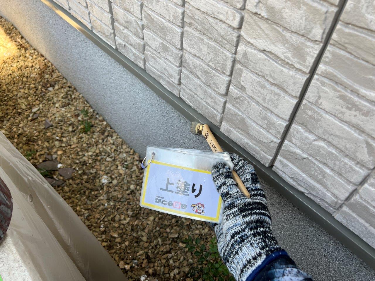 外壁に凹凸があるとマスキングテープで養生してもこのようになります。
