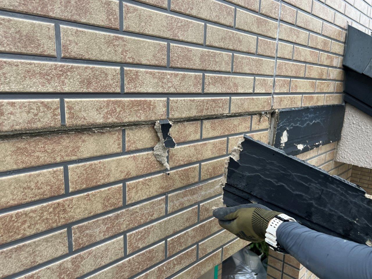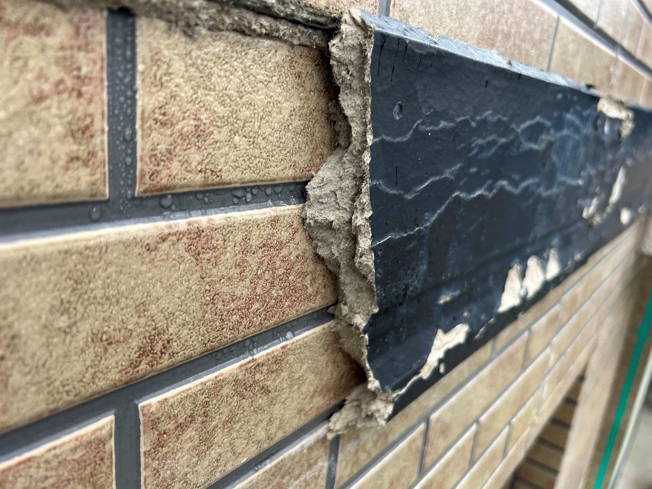 なぜ隙間があいているのかというと、建物が揺れたときに欠損しやすいからです。あとはシーリング工事で上部と目地をうめます。上部のシーリングは雨水が入水しないように厚みをつけて勾配をつけるように施工します。