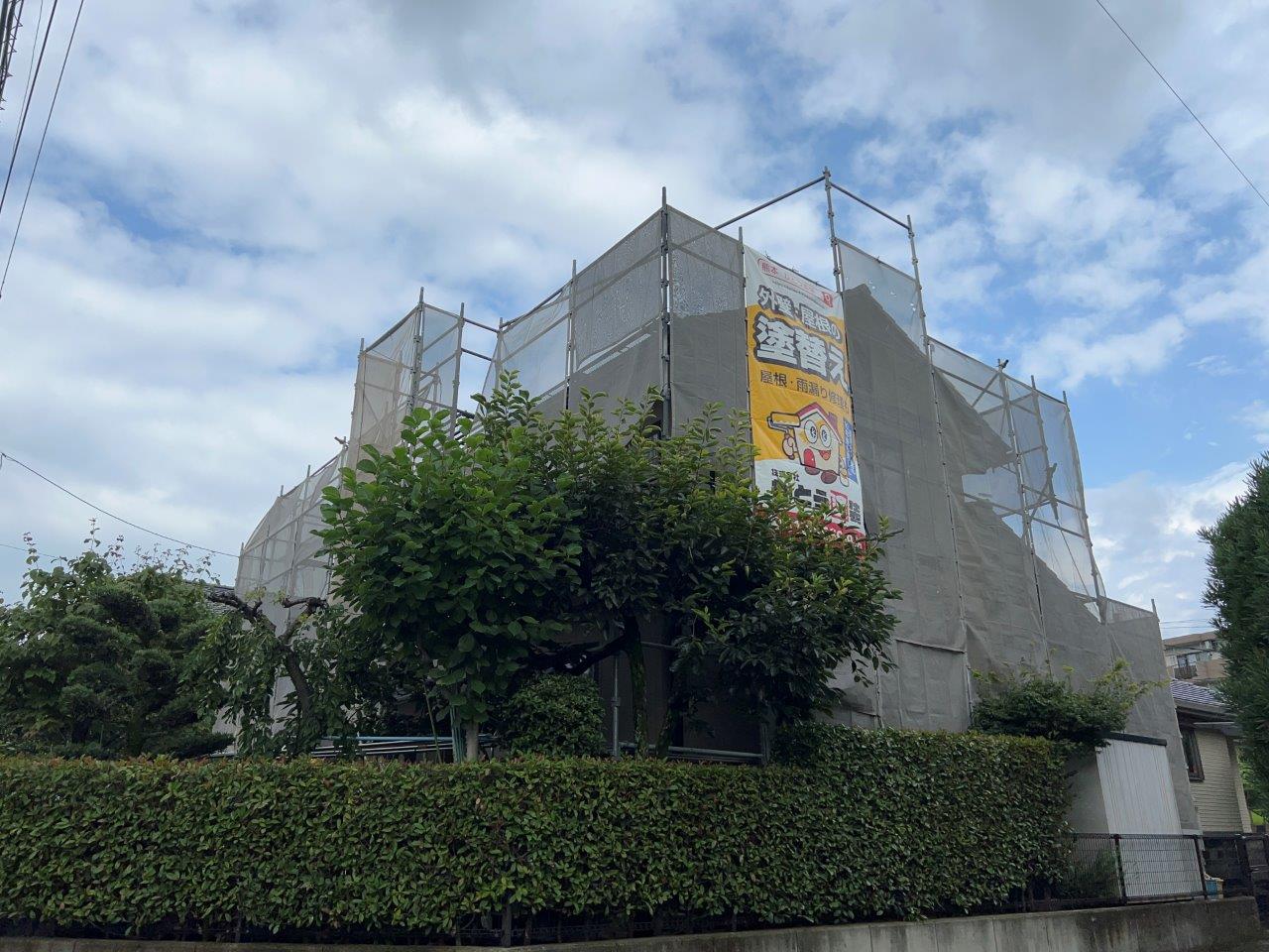 塗装工事が完了して足場がはずれて建物はきれいになってもその他がコケや藻がついていたら、っておもうとお客様のためにいつもなにができるのかを考えていますので出来ることはやってあげたいとおもっています。