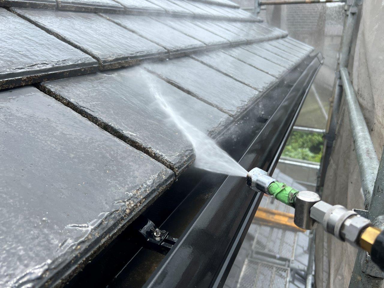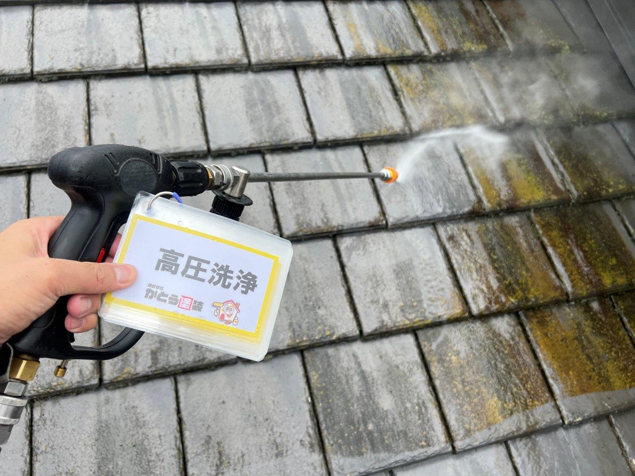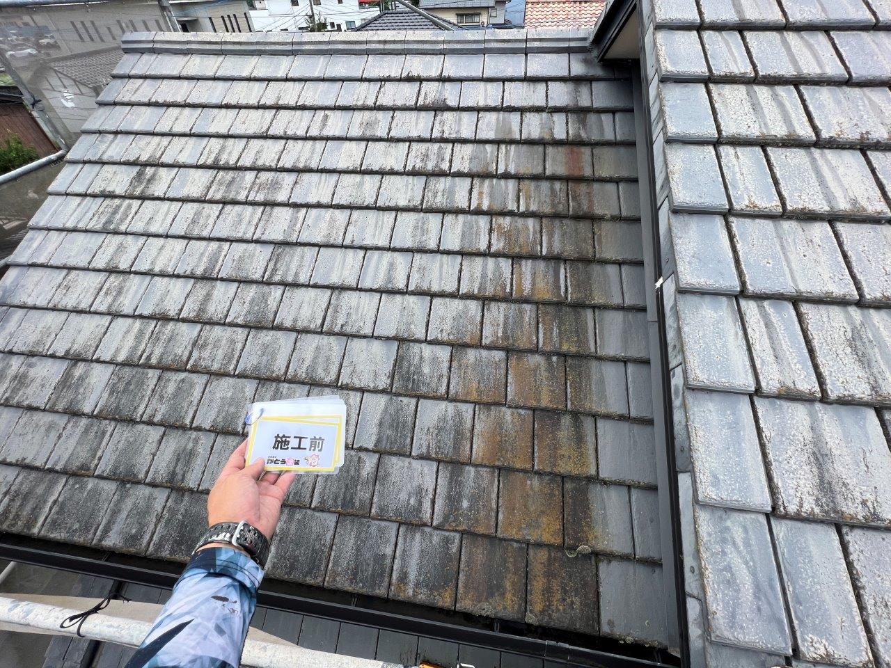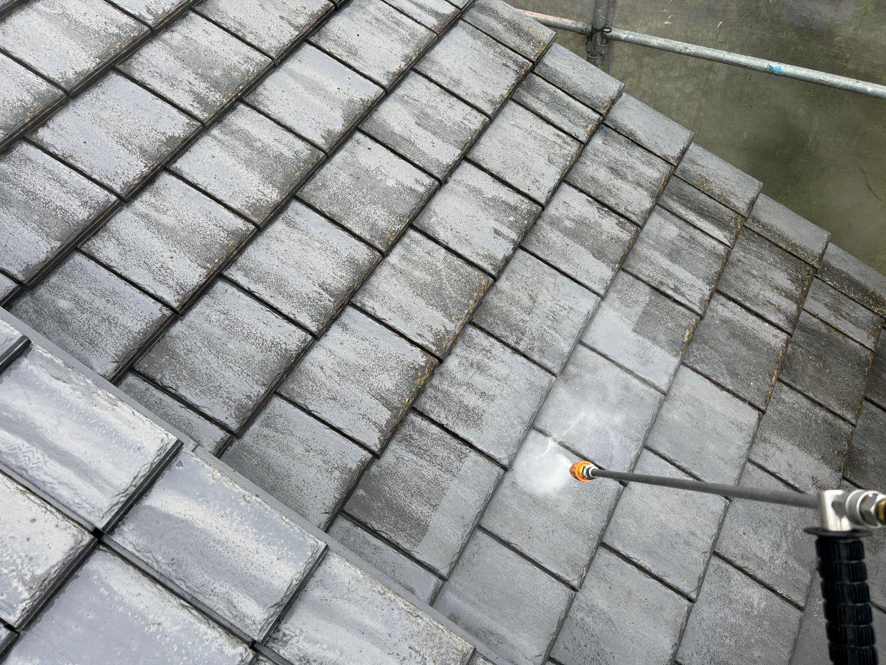 屋根瓦の高圧洗浄状況です。