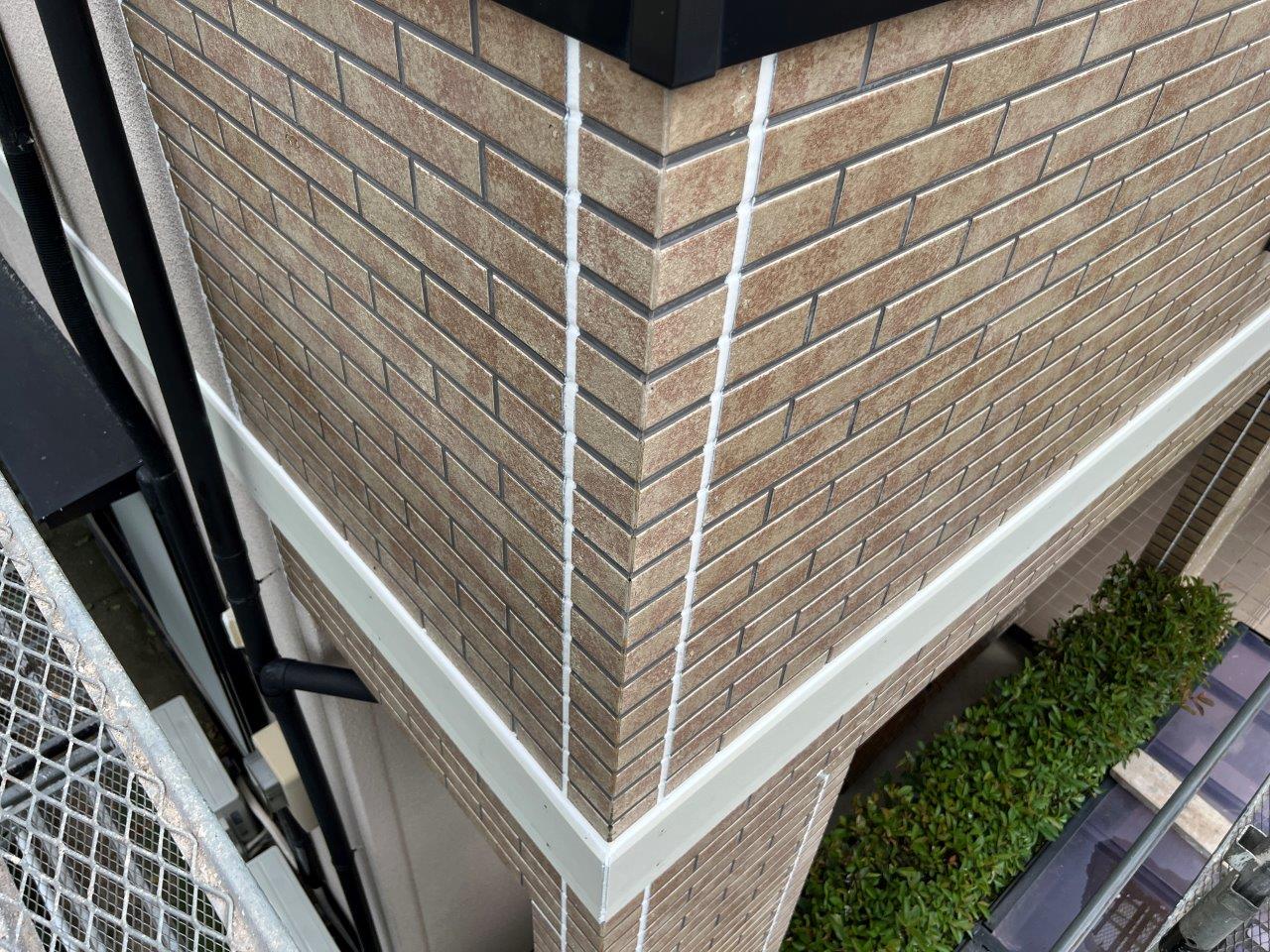 レンガ調のサイディングは色分けでWB工法で塗装します。