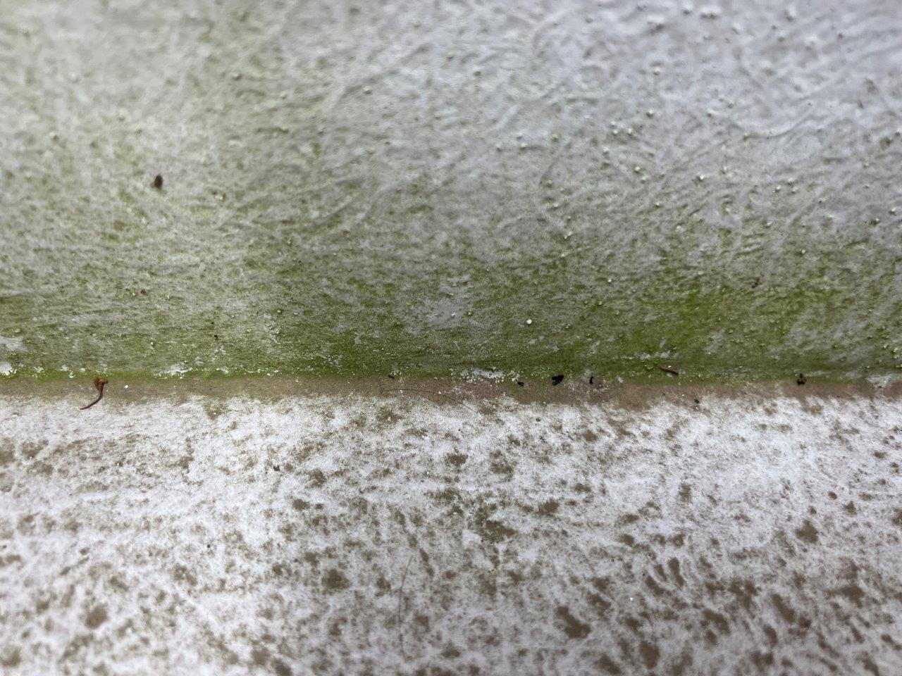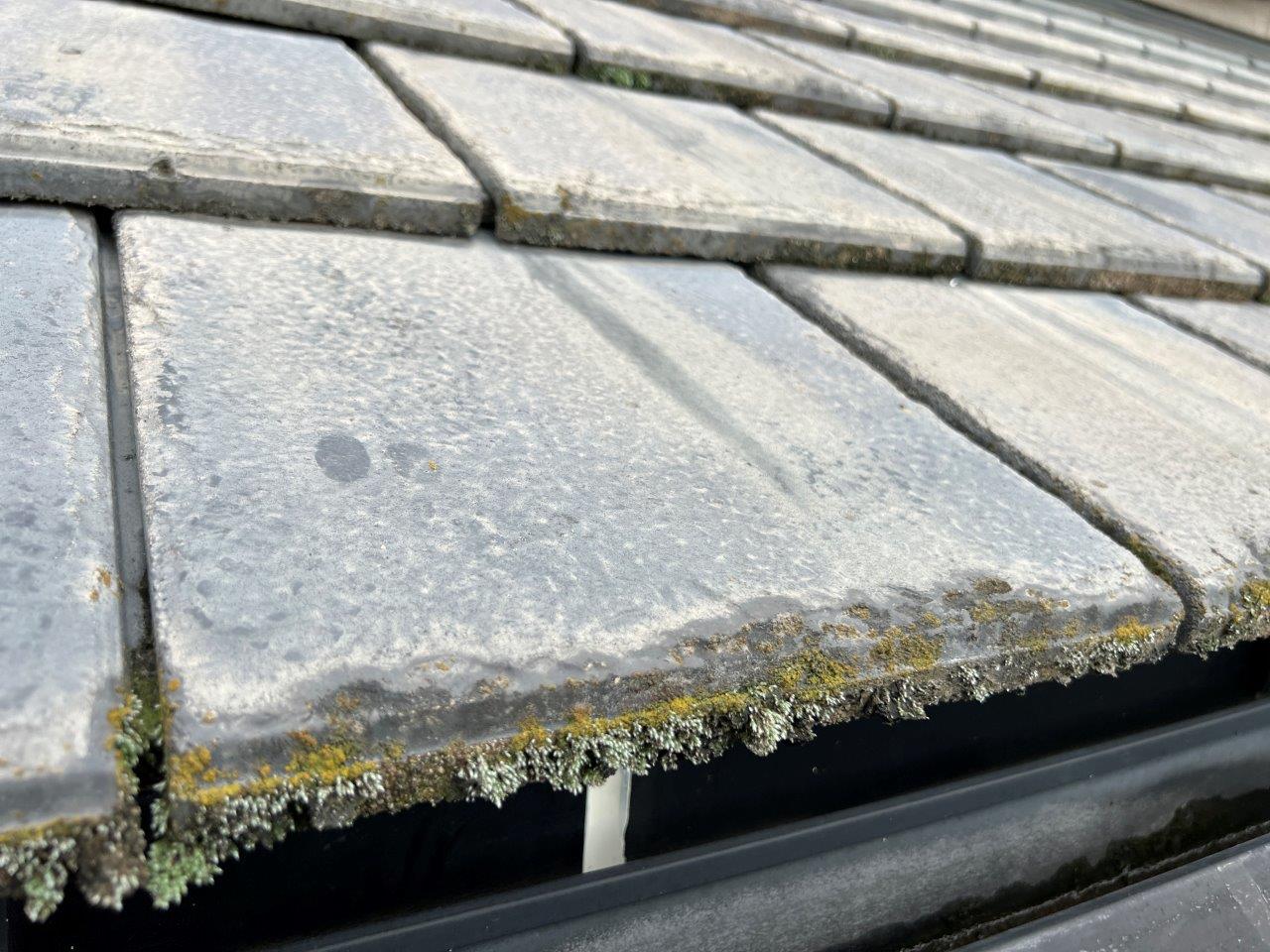 太陽光が当たらない箇所はこのようにカビやコケが発生していました。