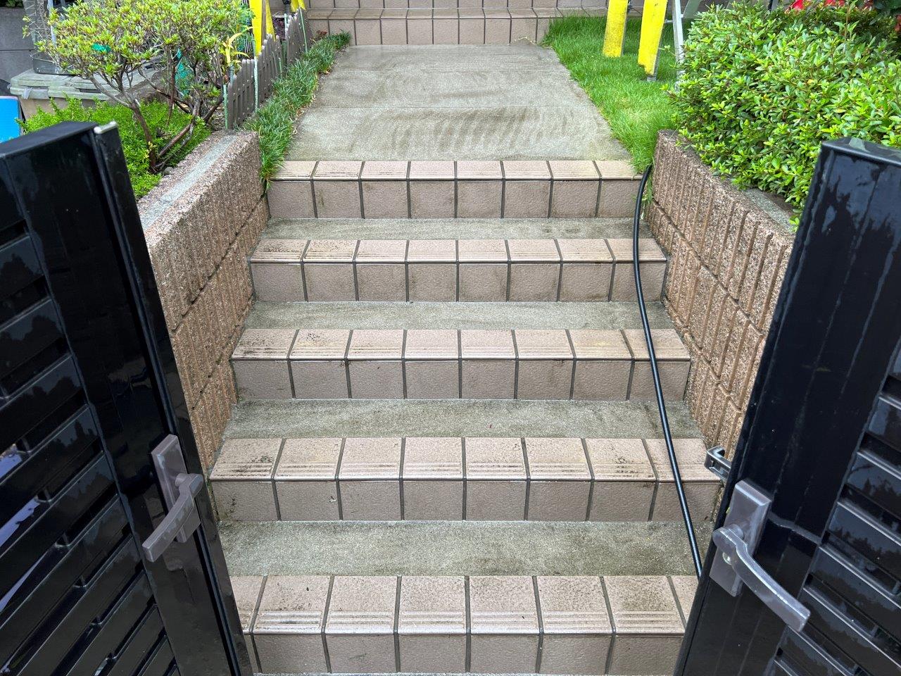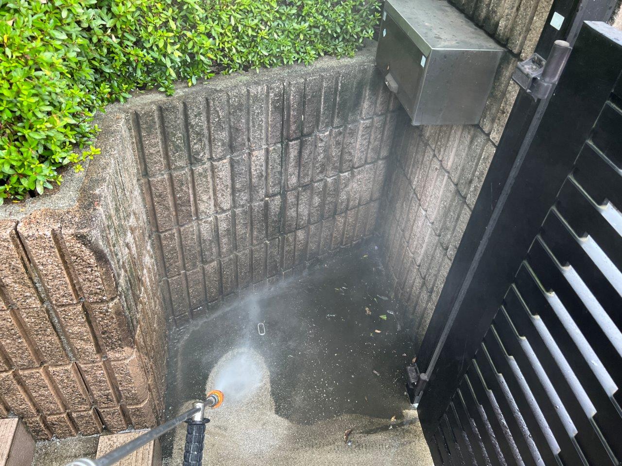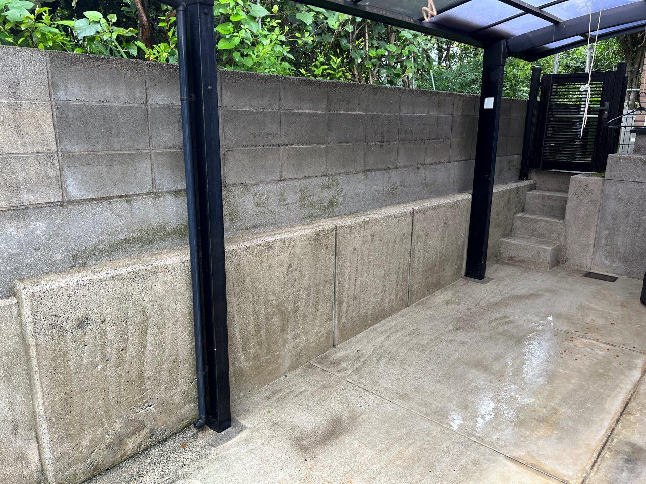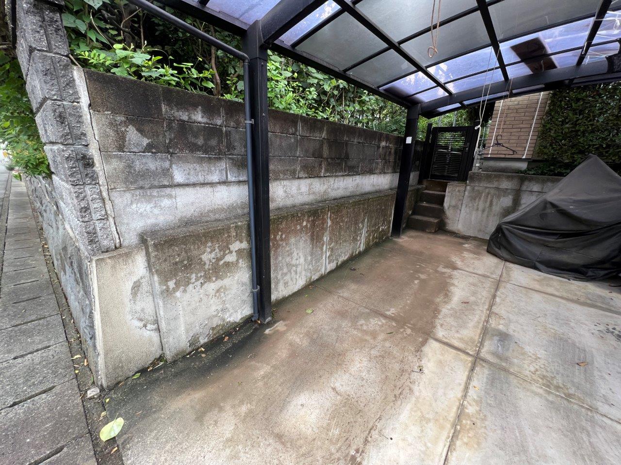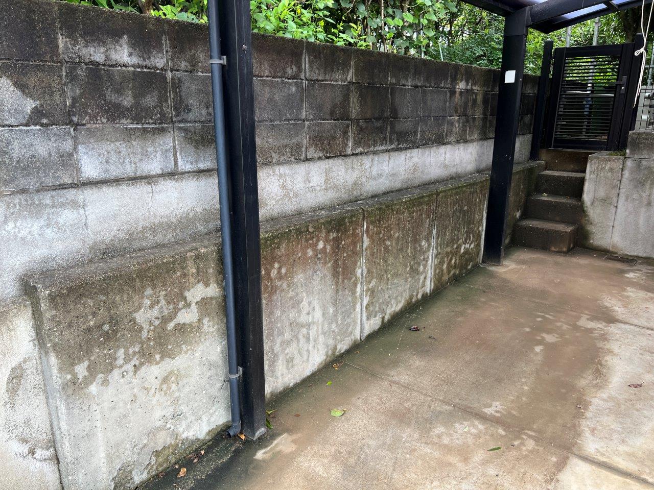 塀は高圧洗浄をします。