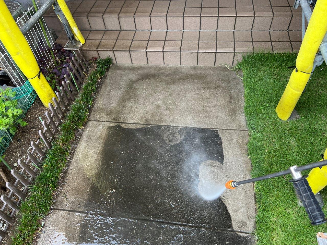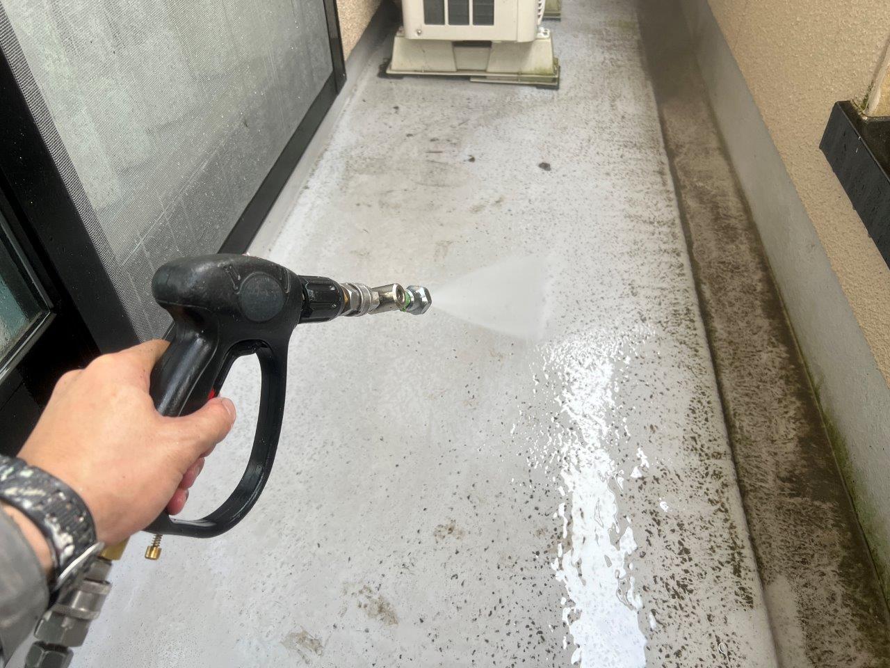 バルコニーの床の高圧洗浄状況です。