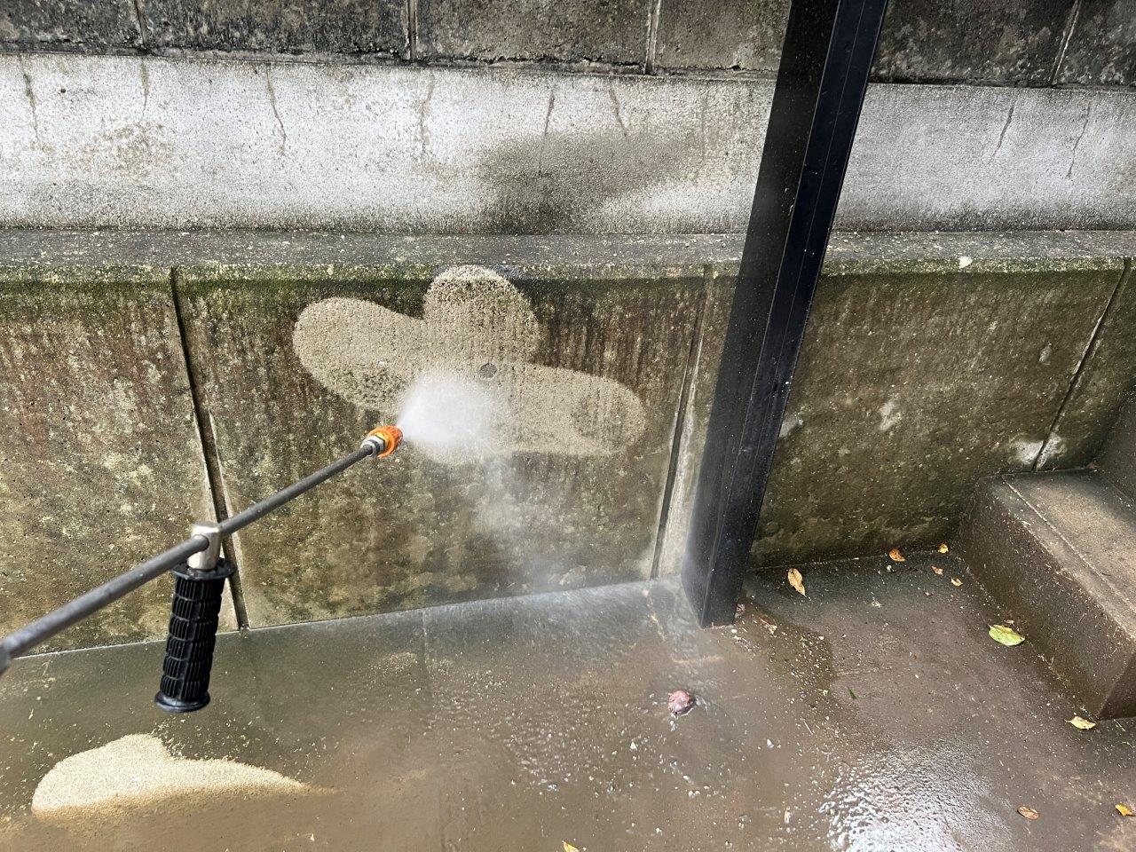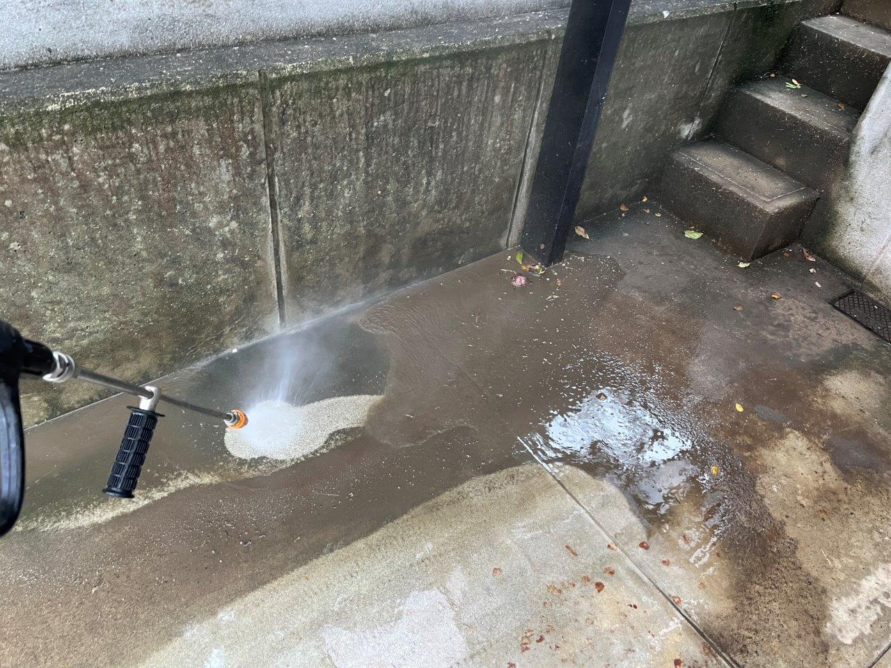 業務用の高圧洗浄機できれいにしていきます。家庭用ですとこうはなりません。