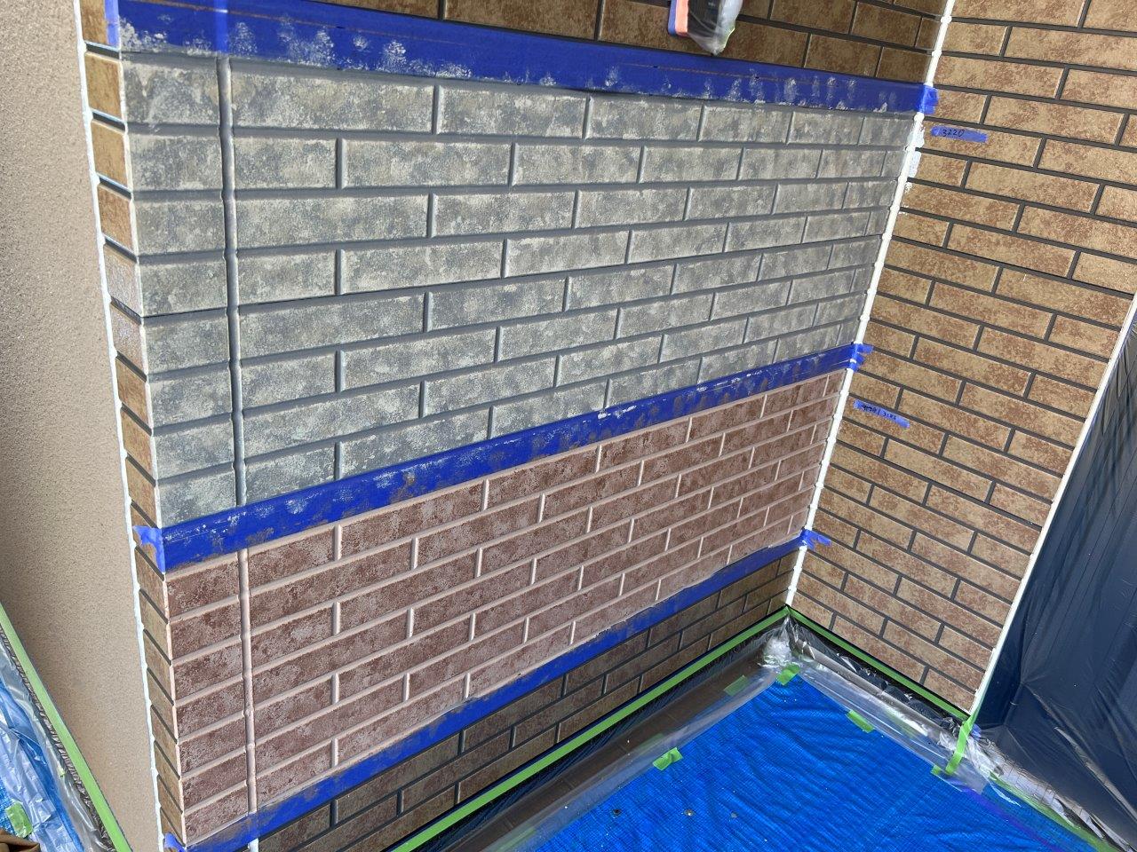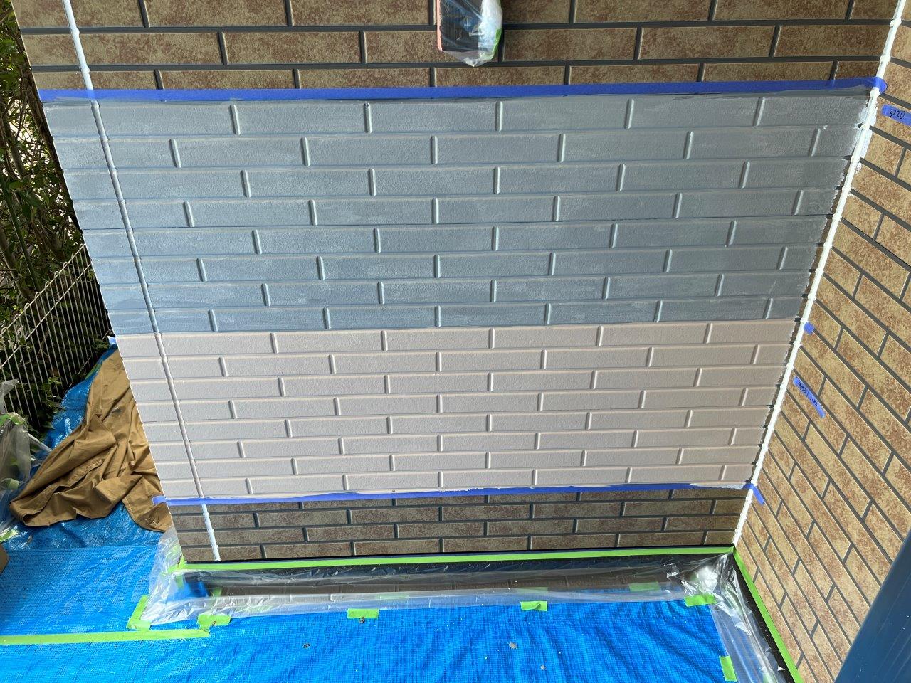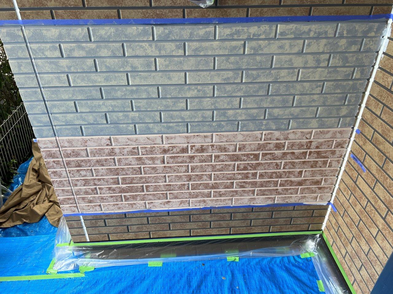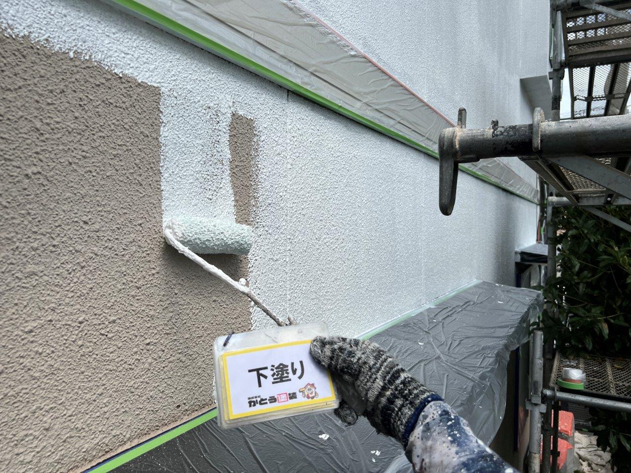 熊本市龍田T様邸外壁塗装,WB工法3色試し塗り、外壁の下塗りをしました。