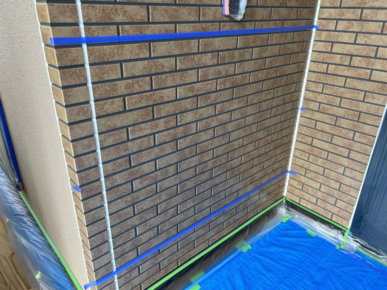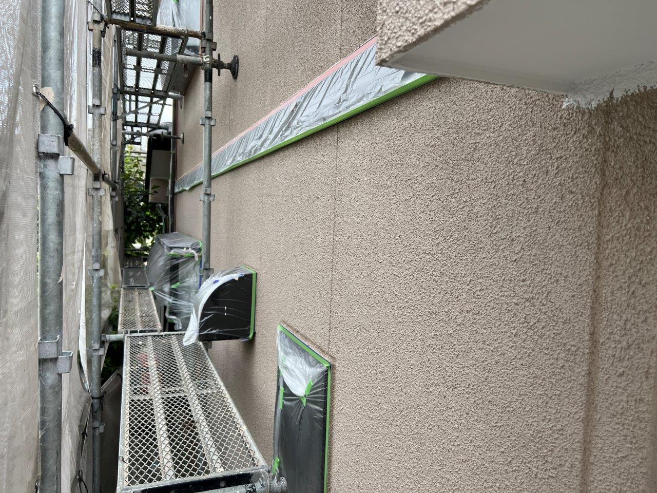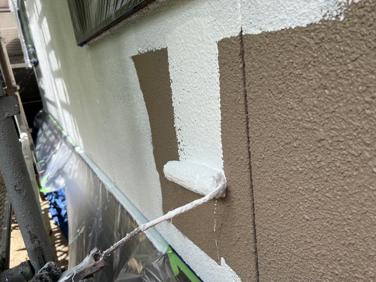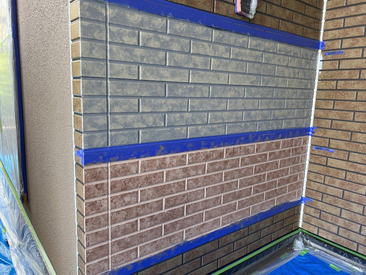 熊本市龍田T様邸外壁塗装,WB工法3色試し塗り、外壁の下塗りをしました。