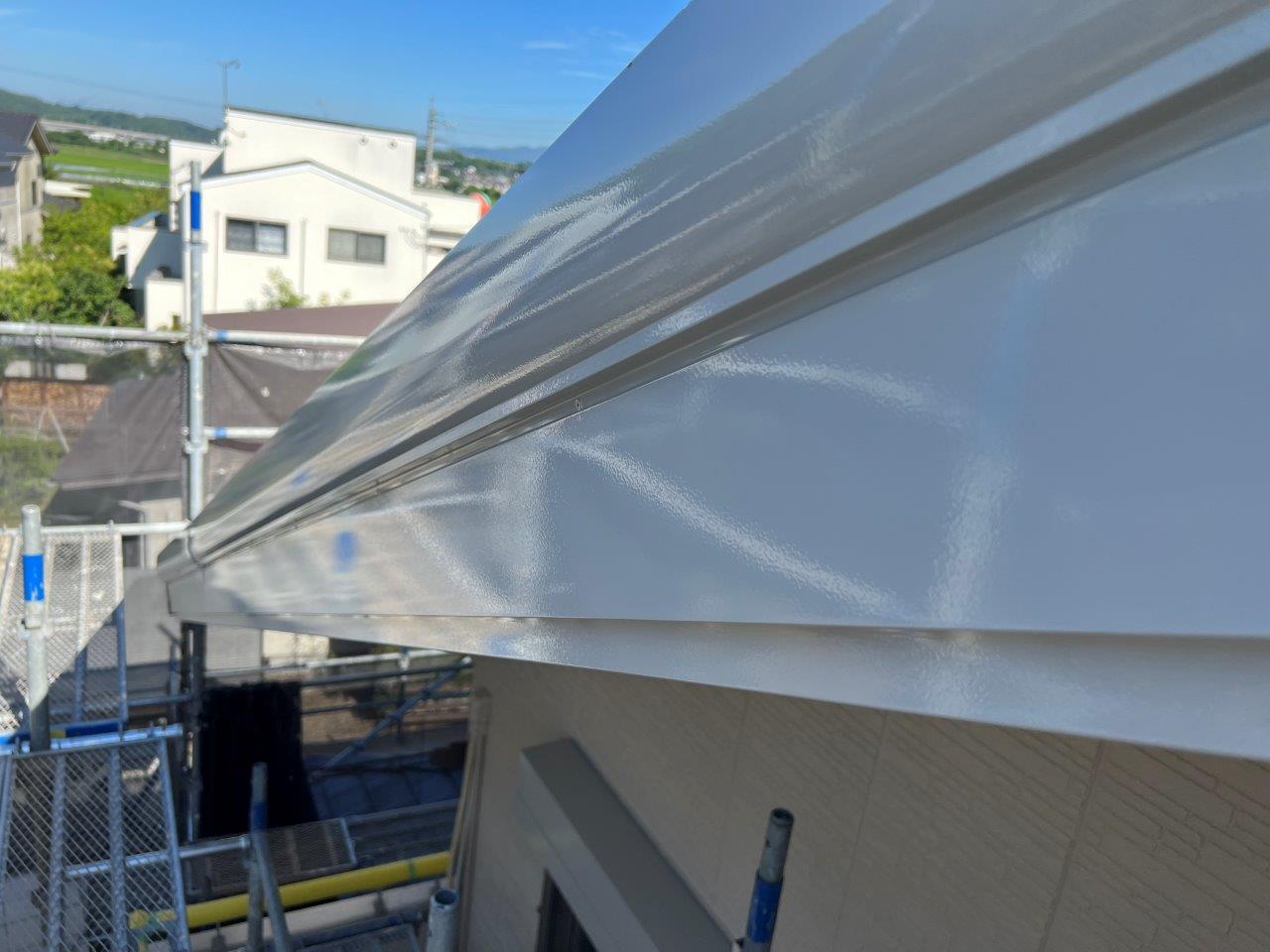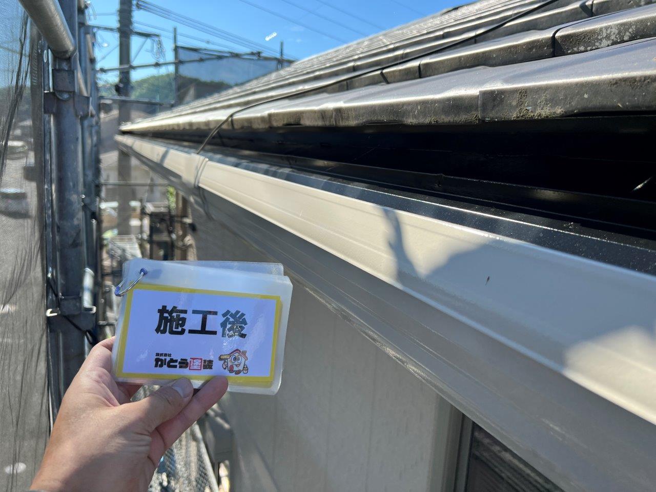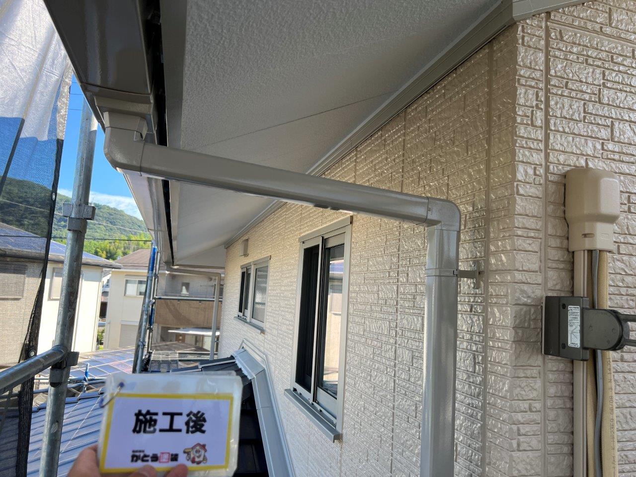破風板や雨どいは4Fフッ素塗料で施工しております。