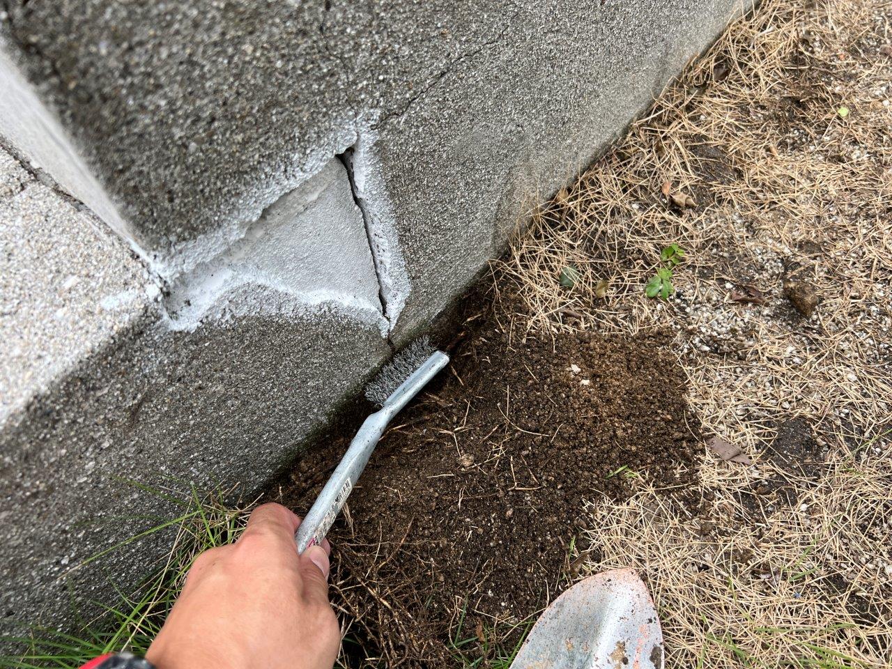 土がついて密着不良をおこさないようにワイヤブラシでケレンをしました。
