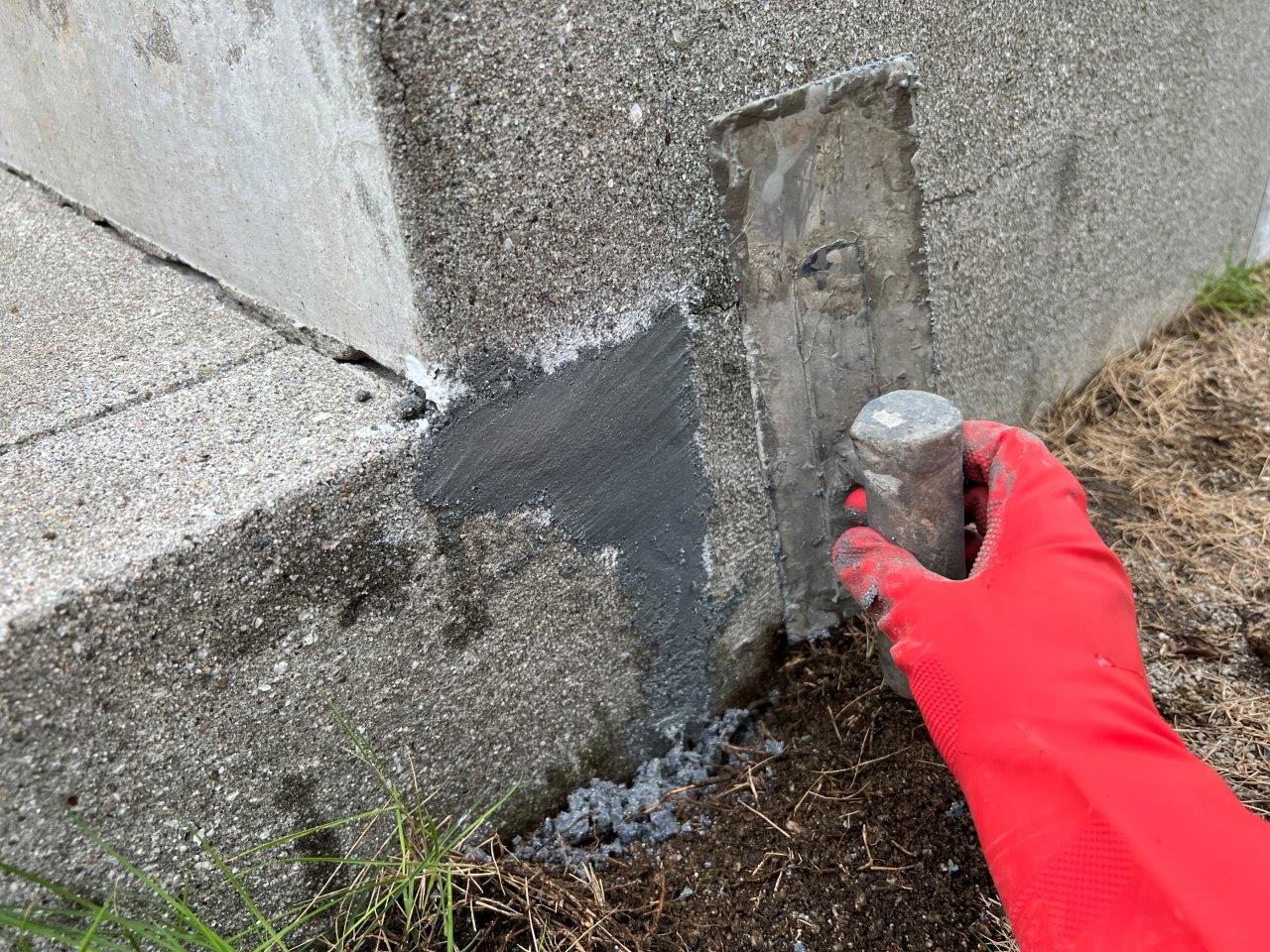 足場が取れたのでコンクリートの欠損箇所を補修しにきております。