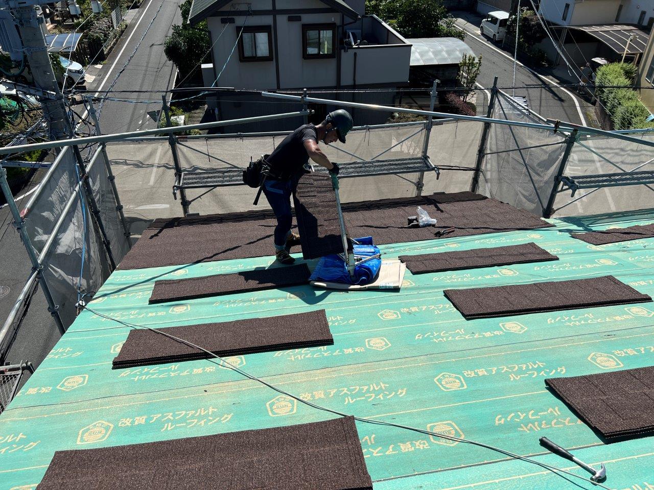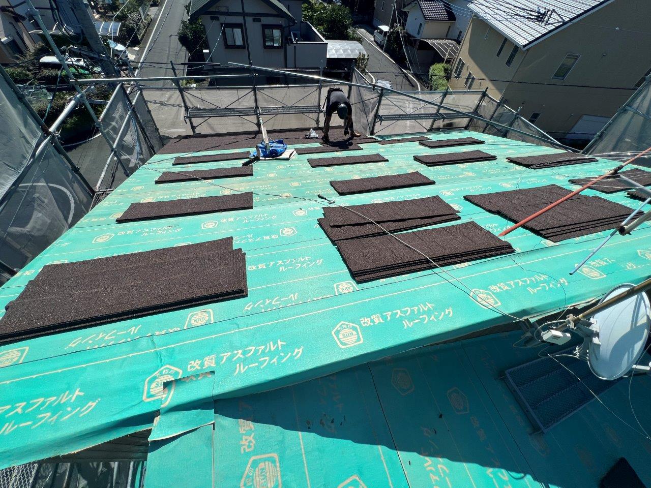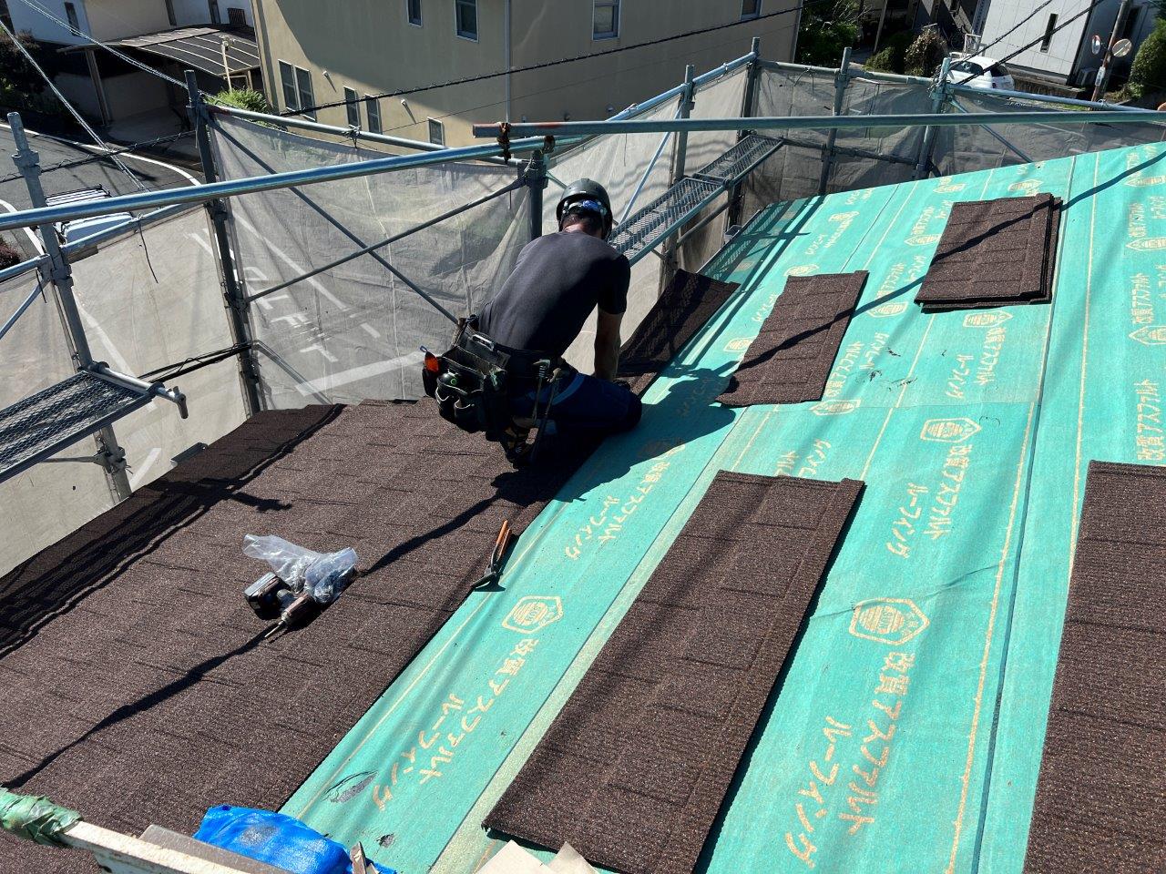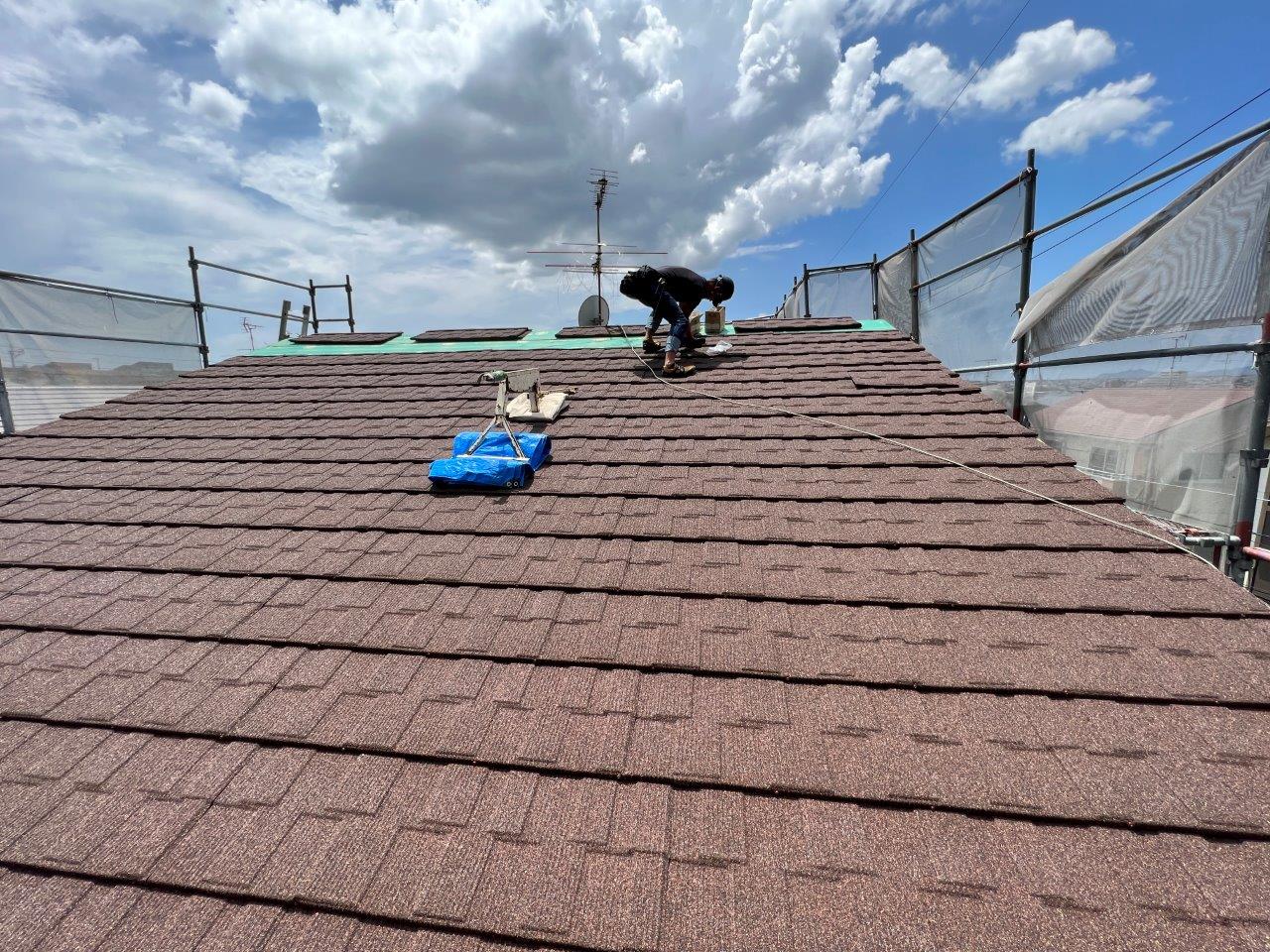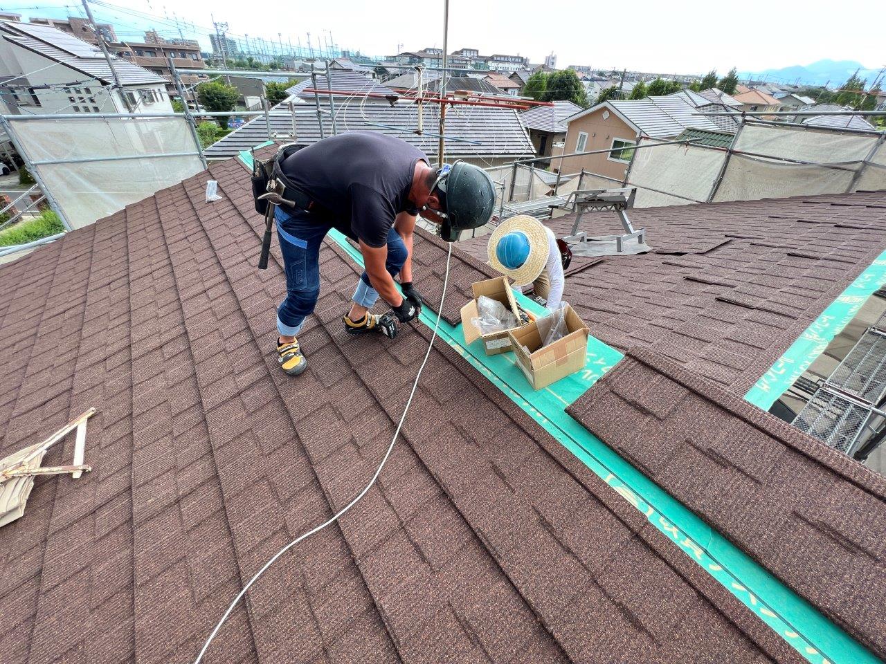熊本屋根カバー工法,光の森Y様邸セネター取り付け2日目。