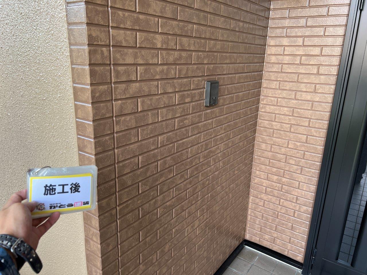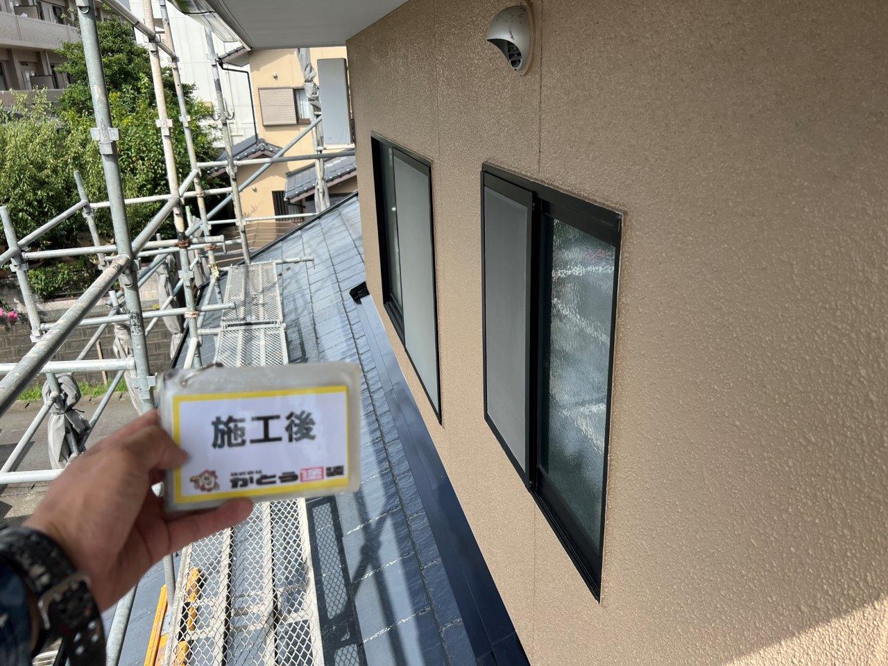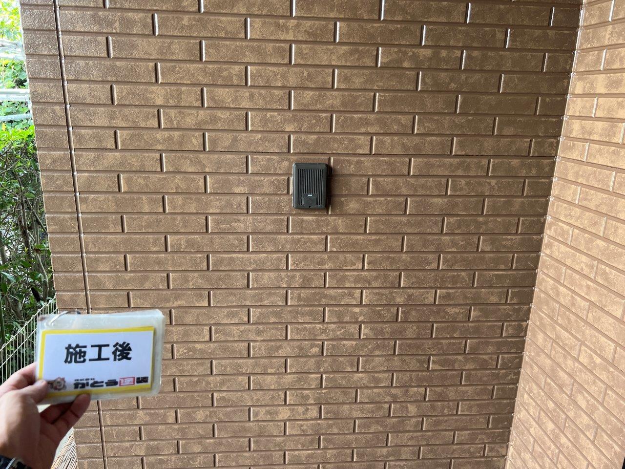 外壁塗装完了あとの壁面のお写真です。使用塗料はガイソー無機Zです。艶は選ぶことができます。ここのお宅で使用した塗料は艶アリになります。
