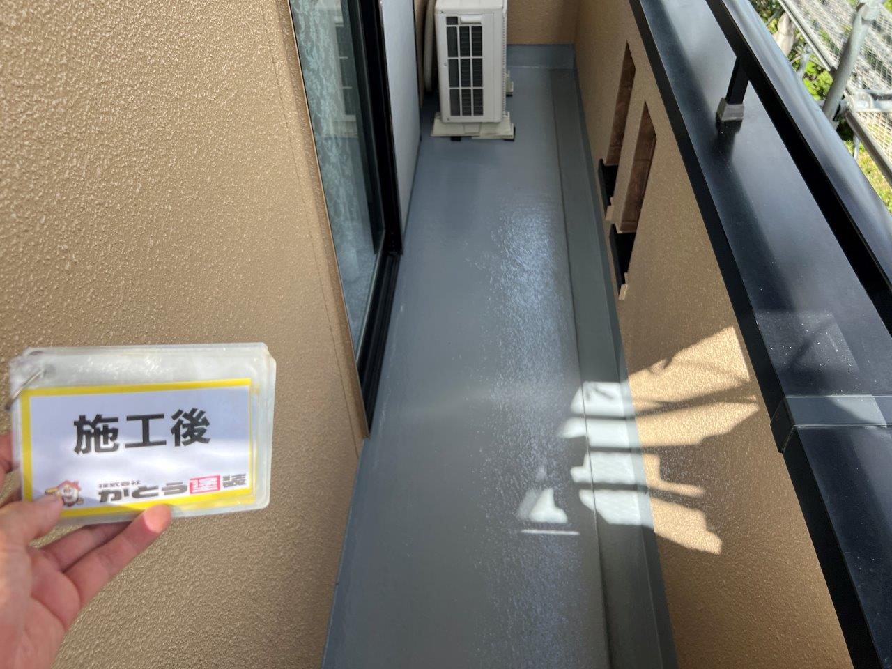 バルコニーの防水塗装の施工後のお写真です。色は2色しかありません。グレーかグリーンです。