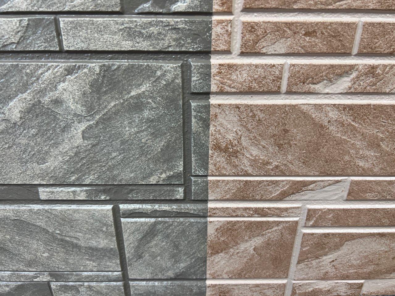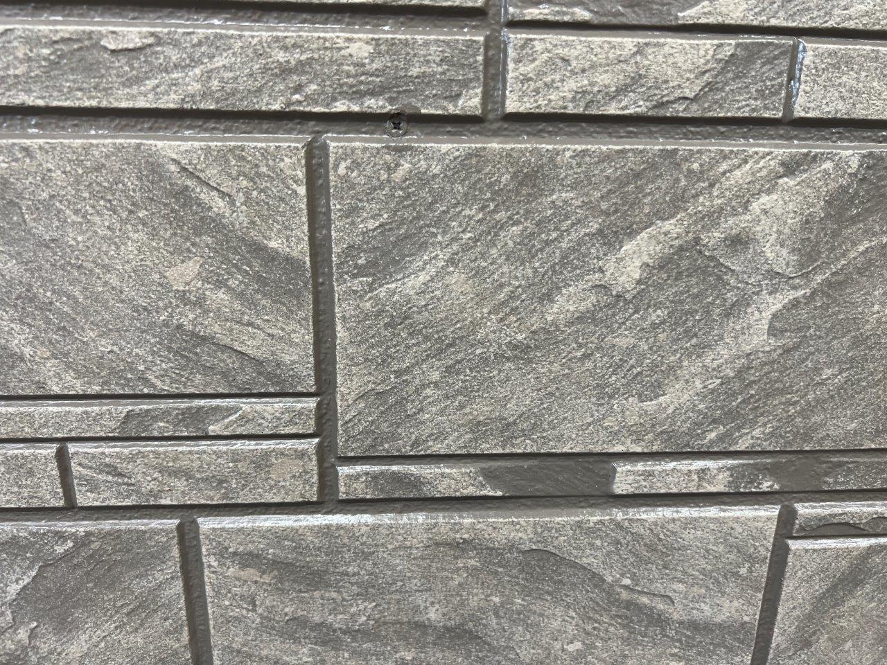 比較検討のために試し塗りをしましたけど、他社さんがよくやる短毛ローラーでの2色塗りです。目地以外の部分はどうしても埋まってしまいます。サイディングボードの形状にもよりますけど、安っぽくなる場合があります。