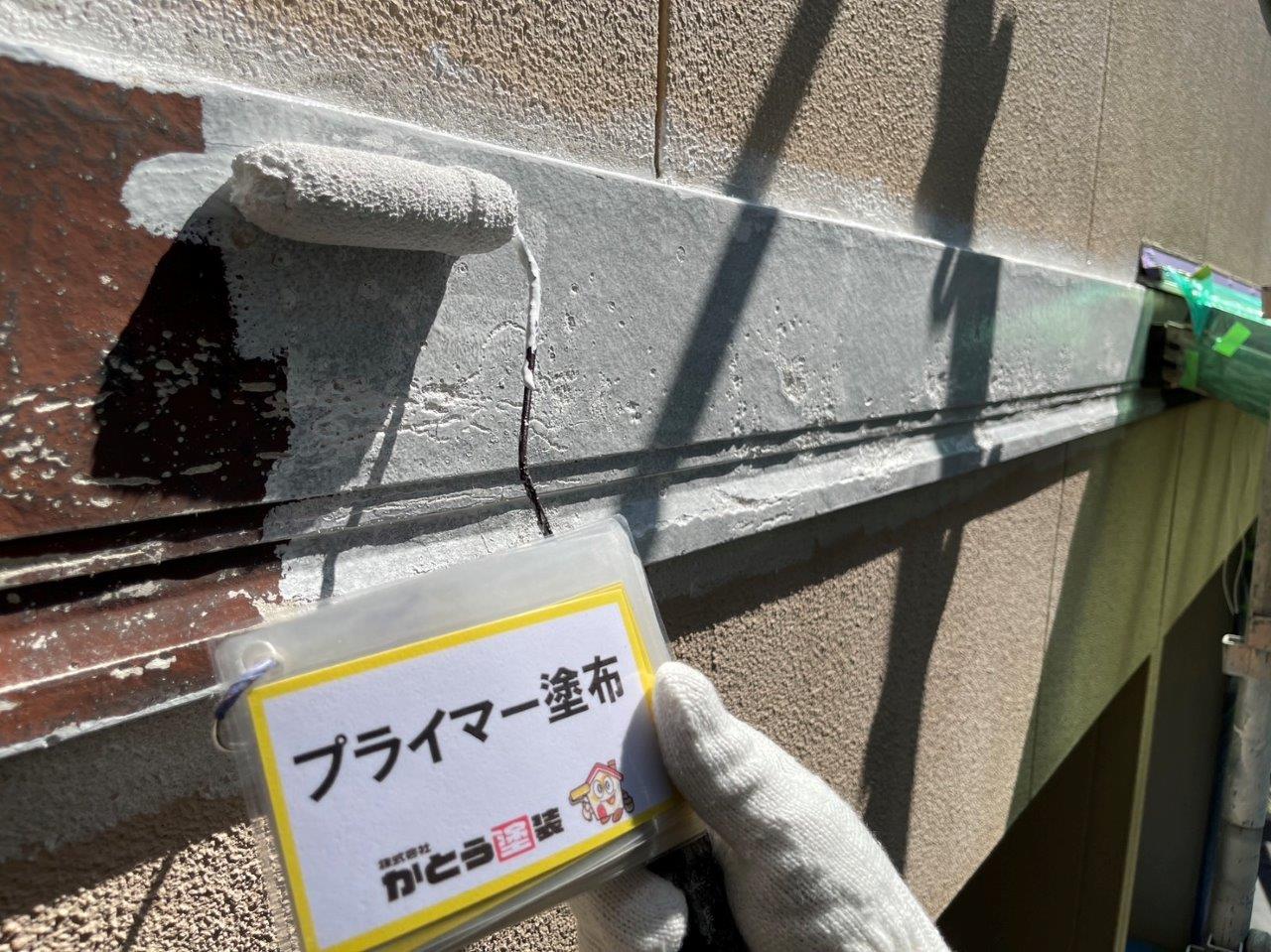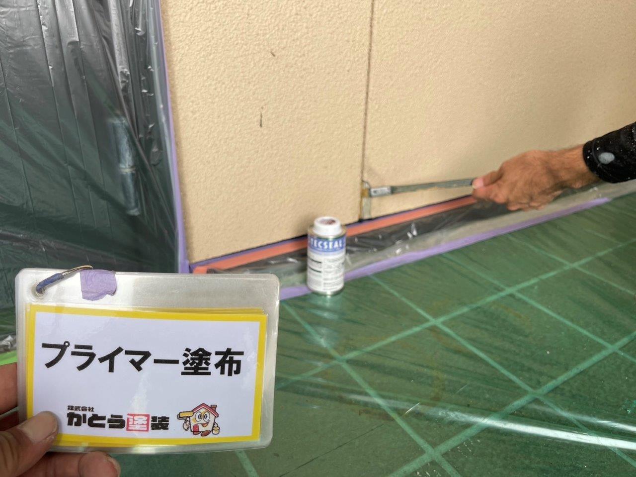 そのあとにプライマー塗布してパテを固めて下地の吸い込みをとめます。