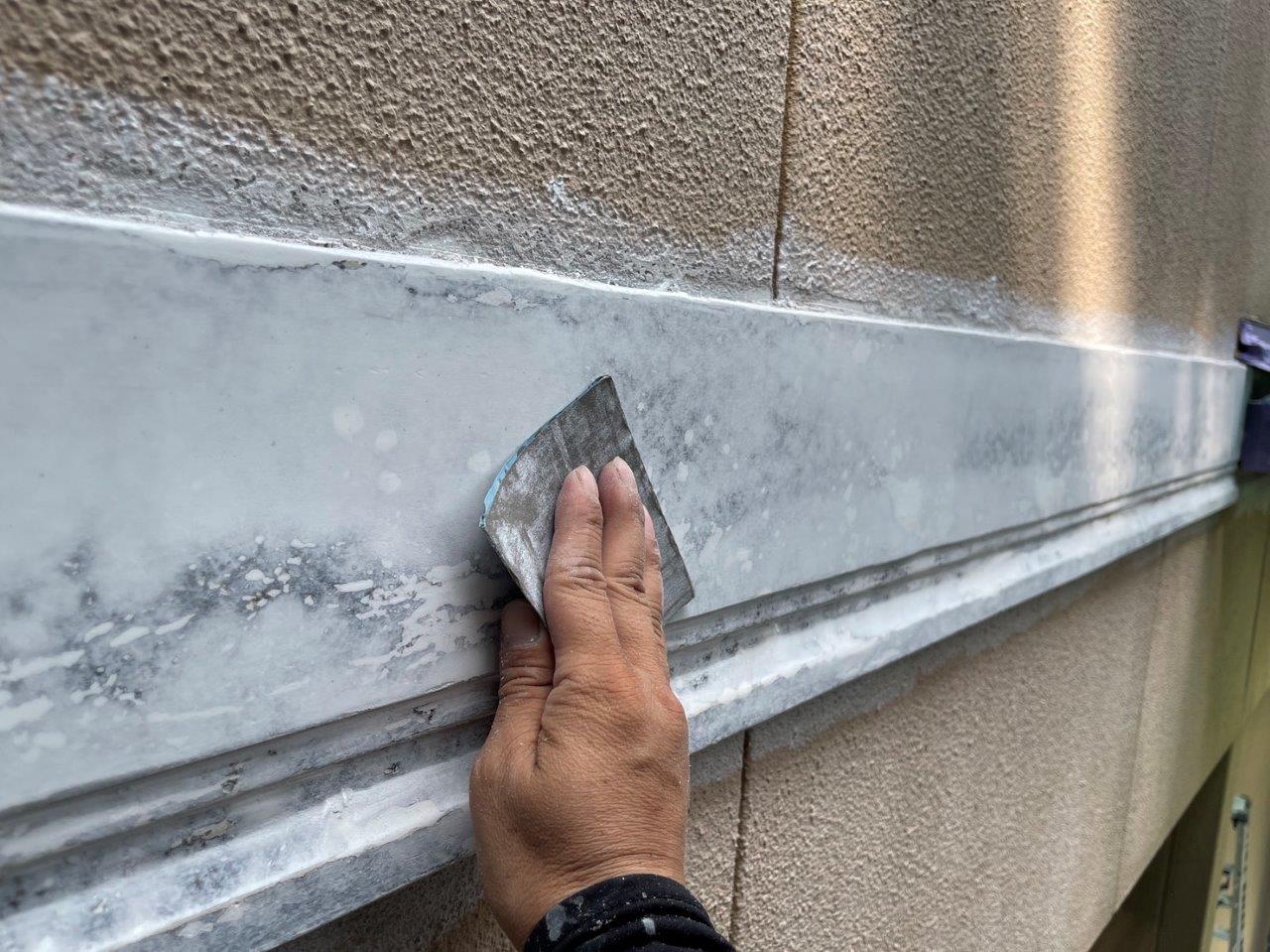 セメント質をがちっと固めます、粉がでてるうえにコーキングをしても剝がれてしまいます。