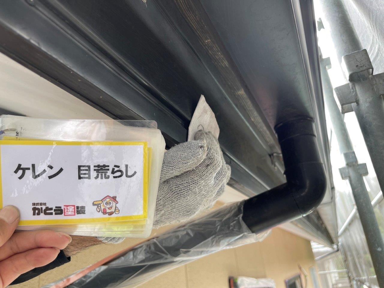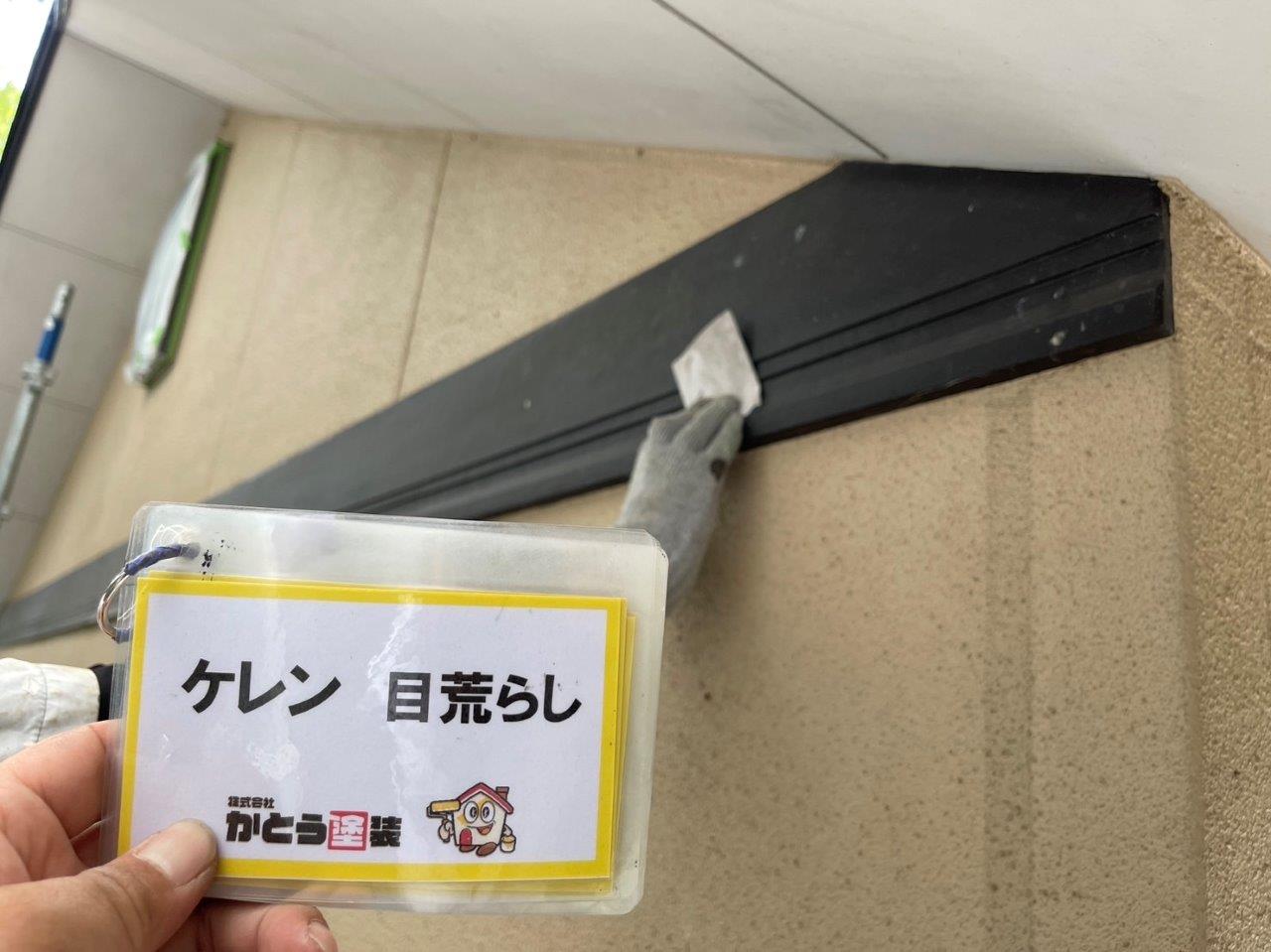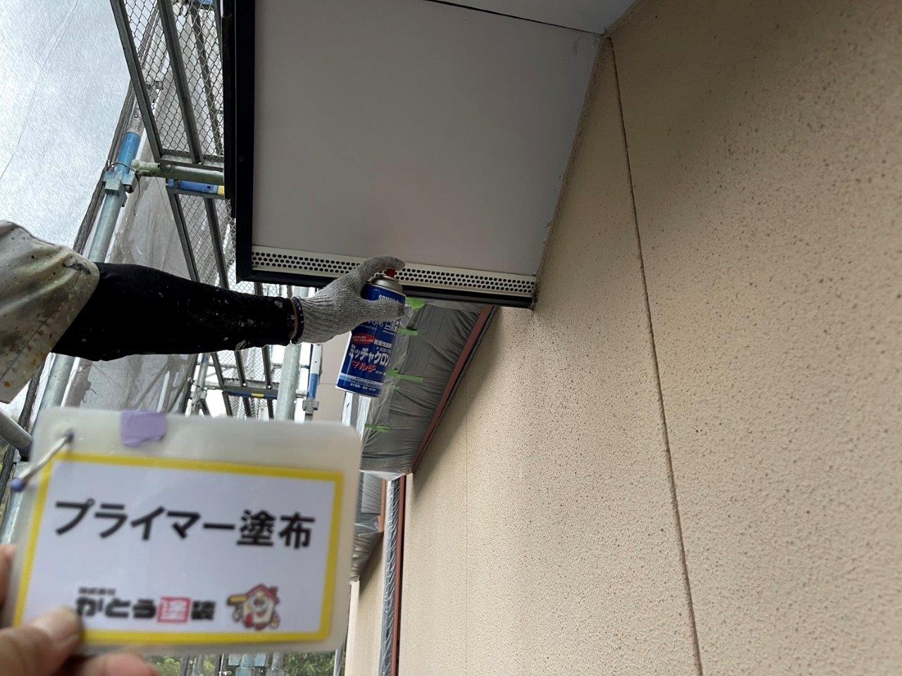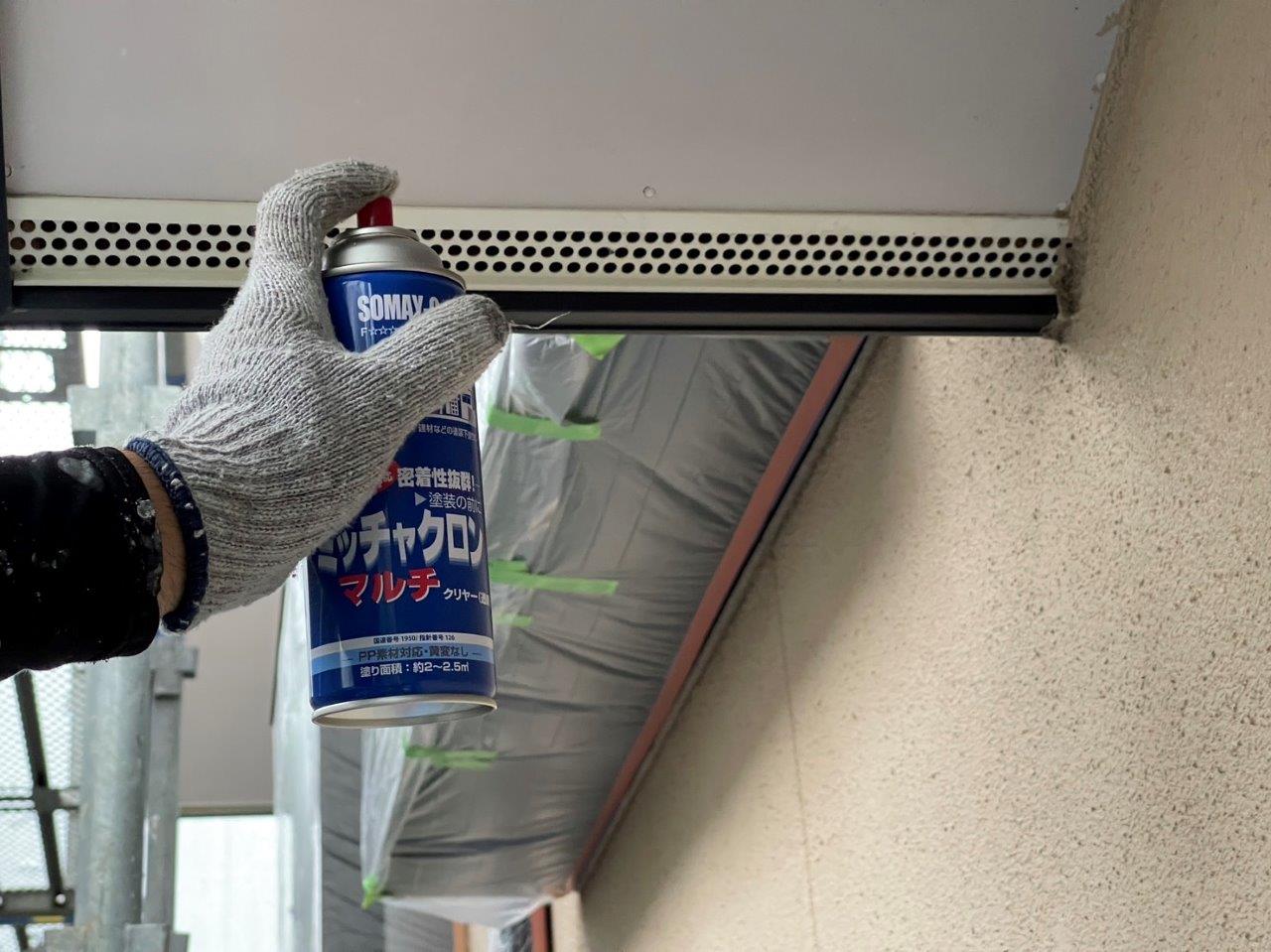 軒天の通気口にはミッチャクロンを塗装してから塗装します。密着が悪いと剝離してしまうからです。