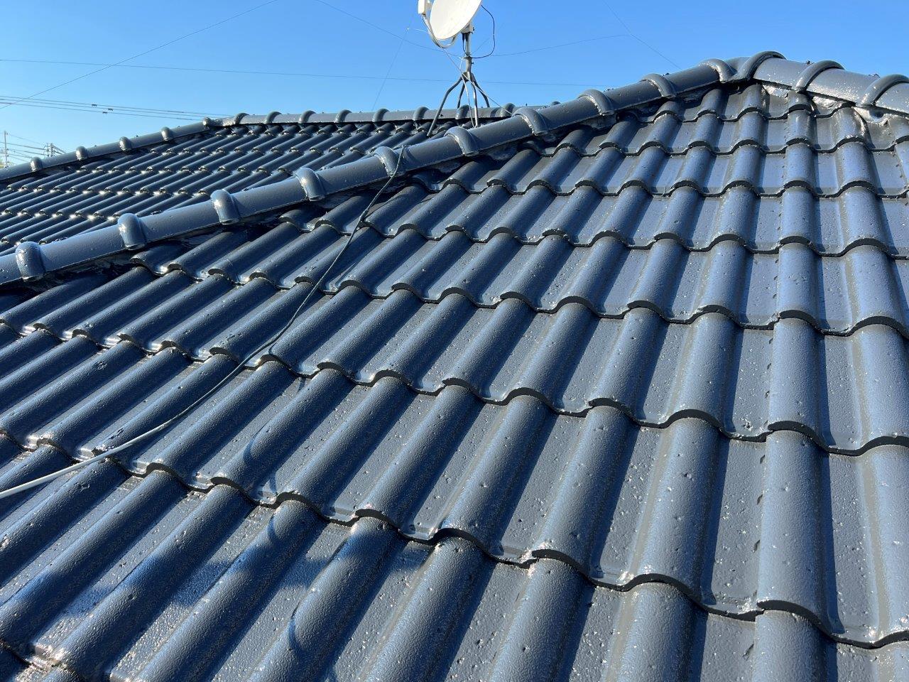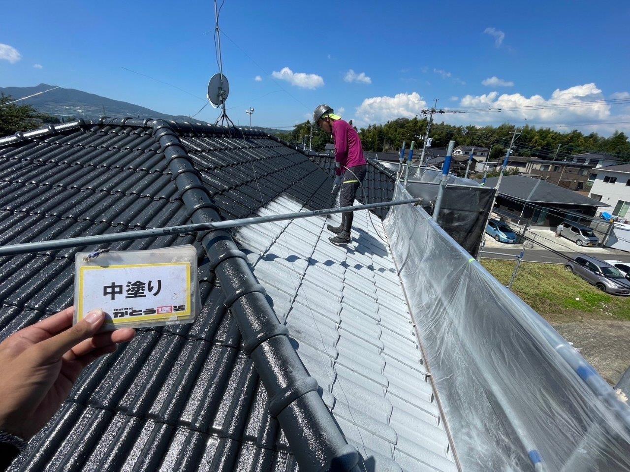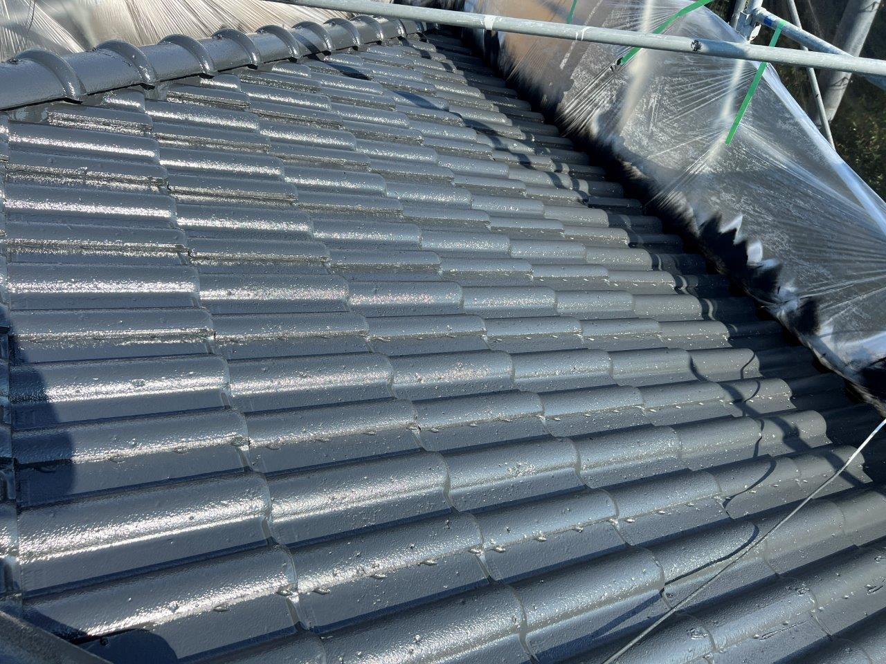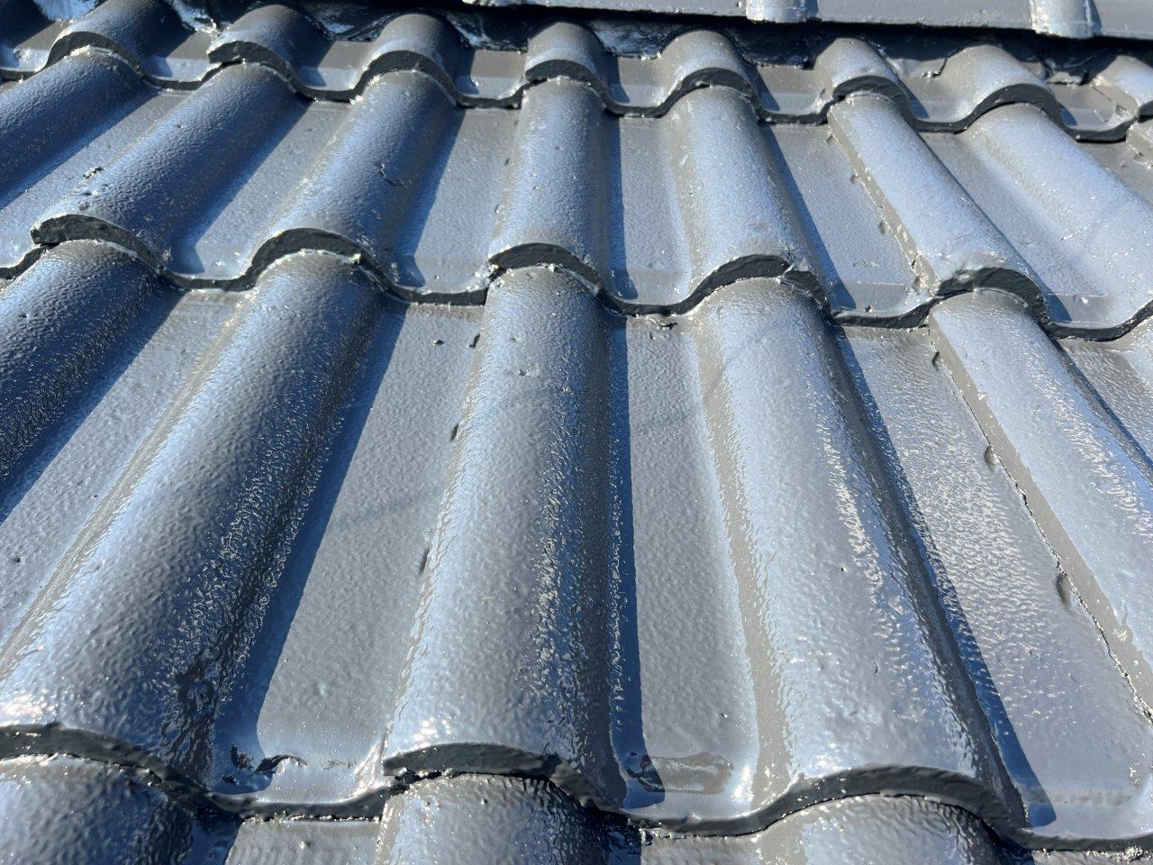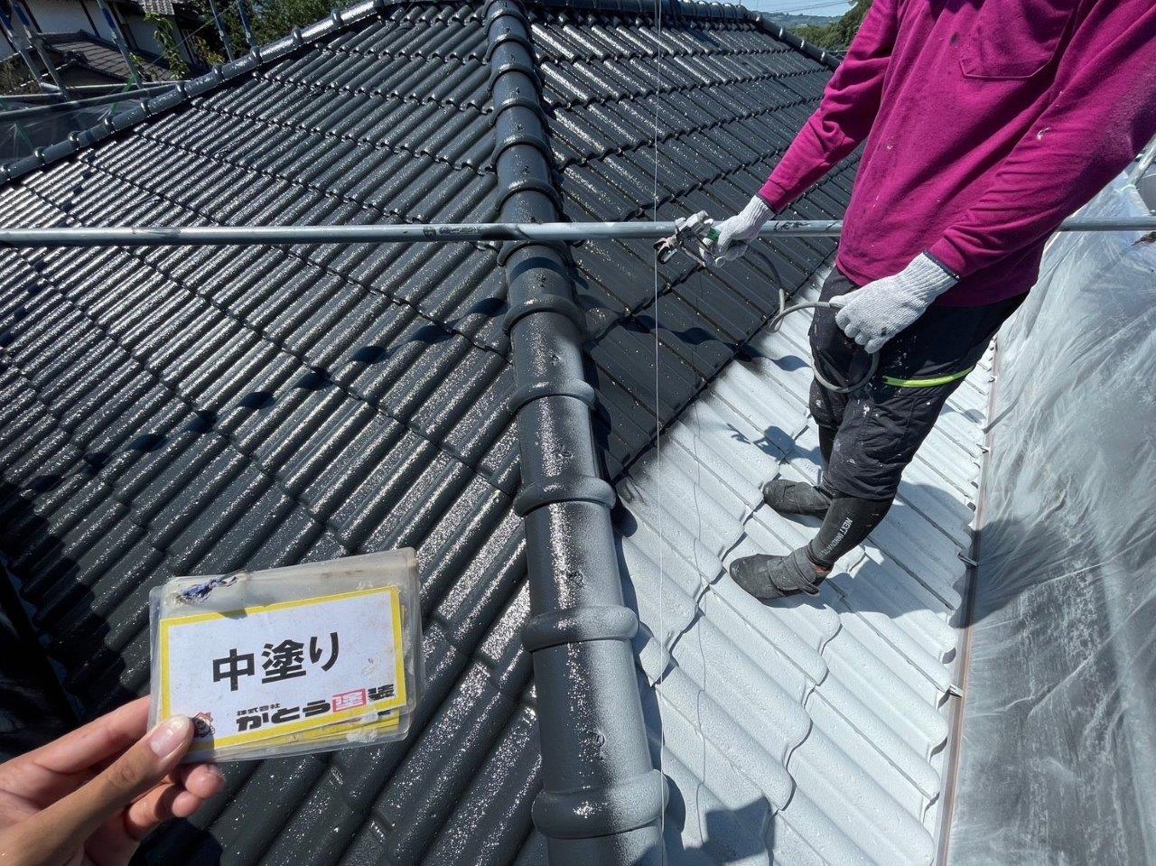 屋根瓦の吹付塗装の中塗りをおこないました。