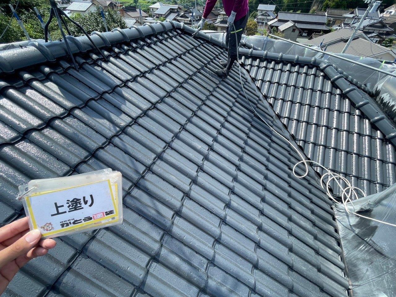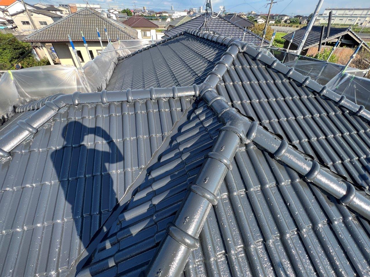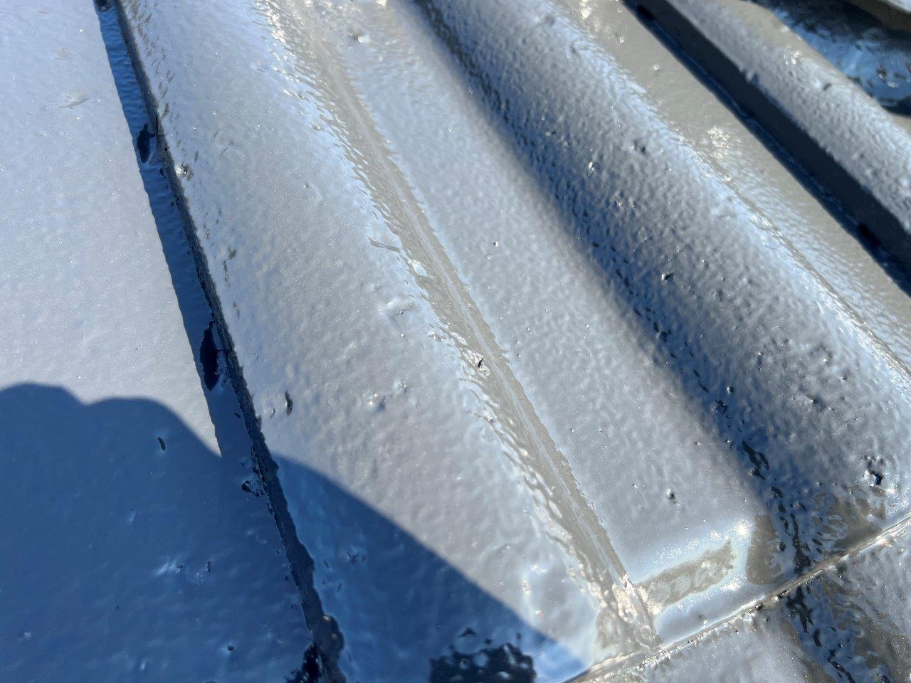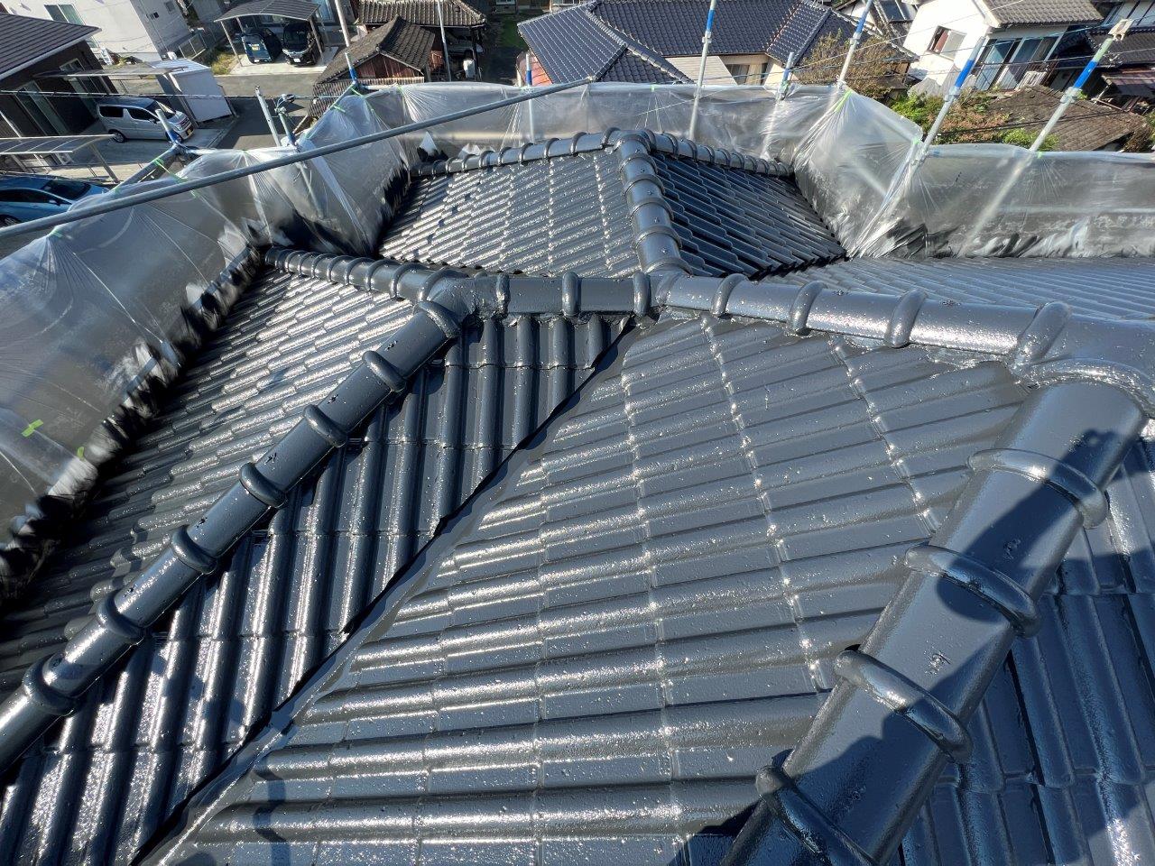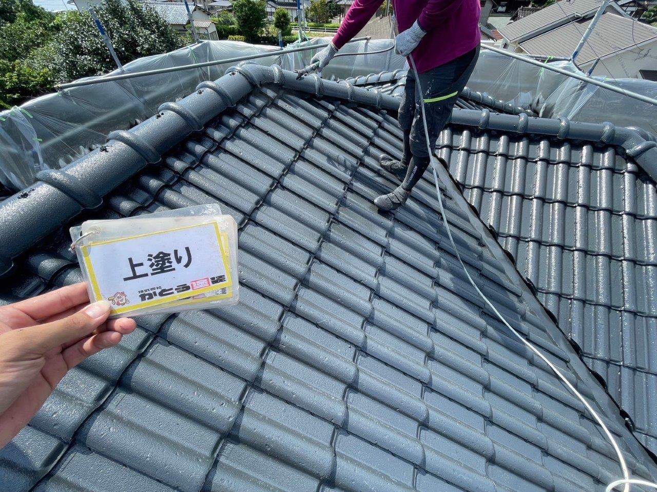 屋根瓦の吹付塗装の中塗りをおこないました。
