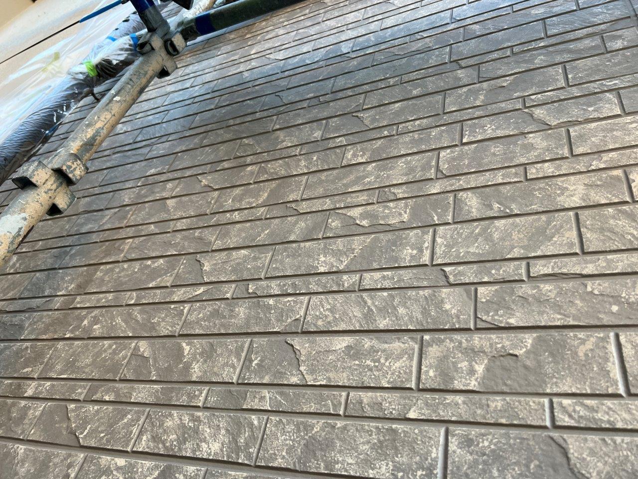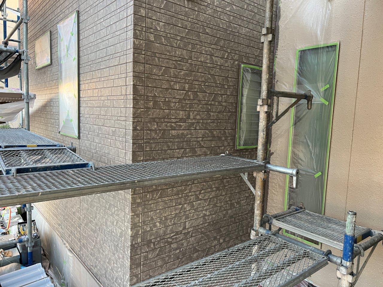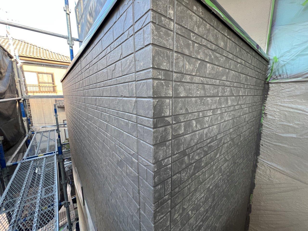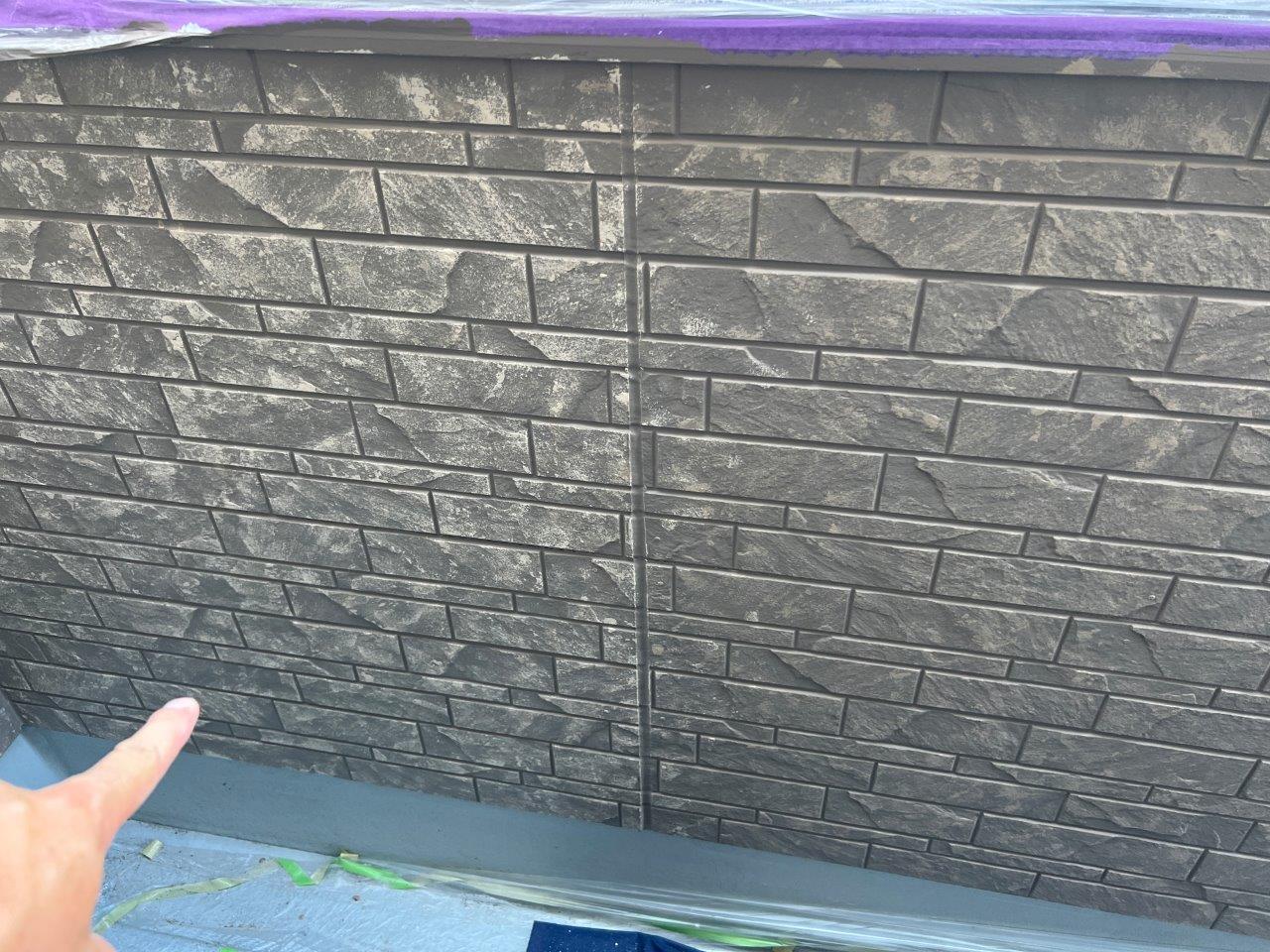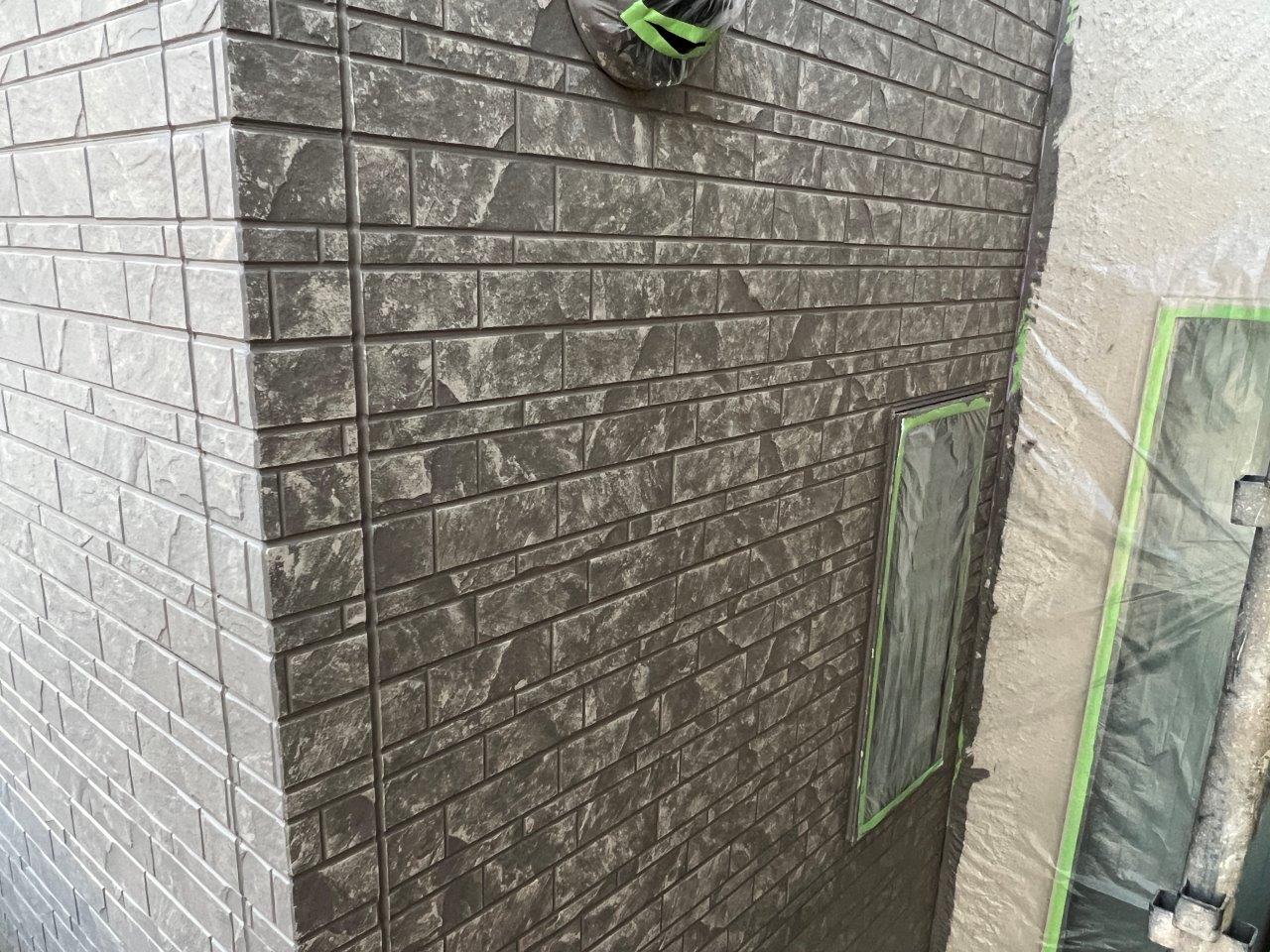 WB工法のC色を塗装しました。目地から左側が3色めのパターンづけになります。深みがでますね