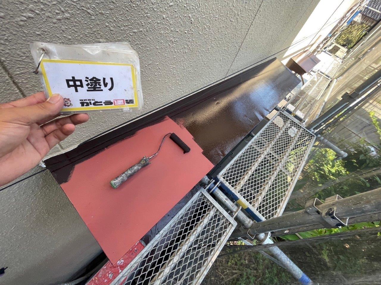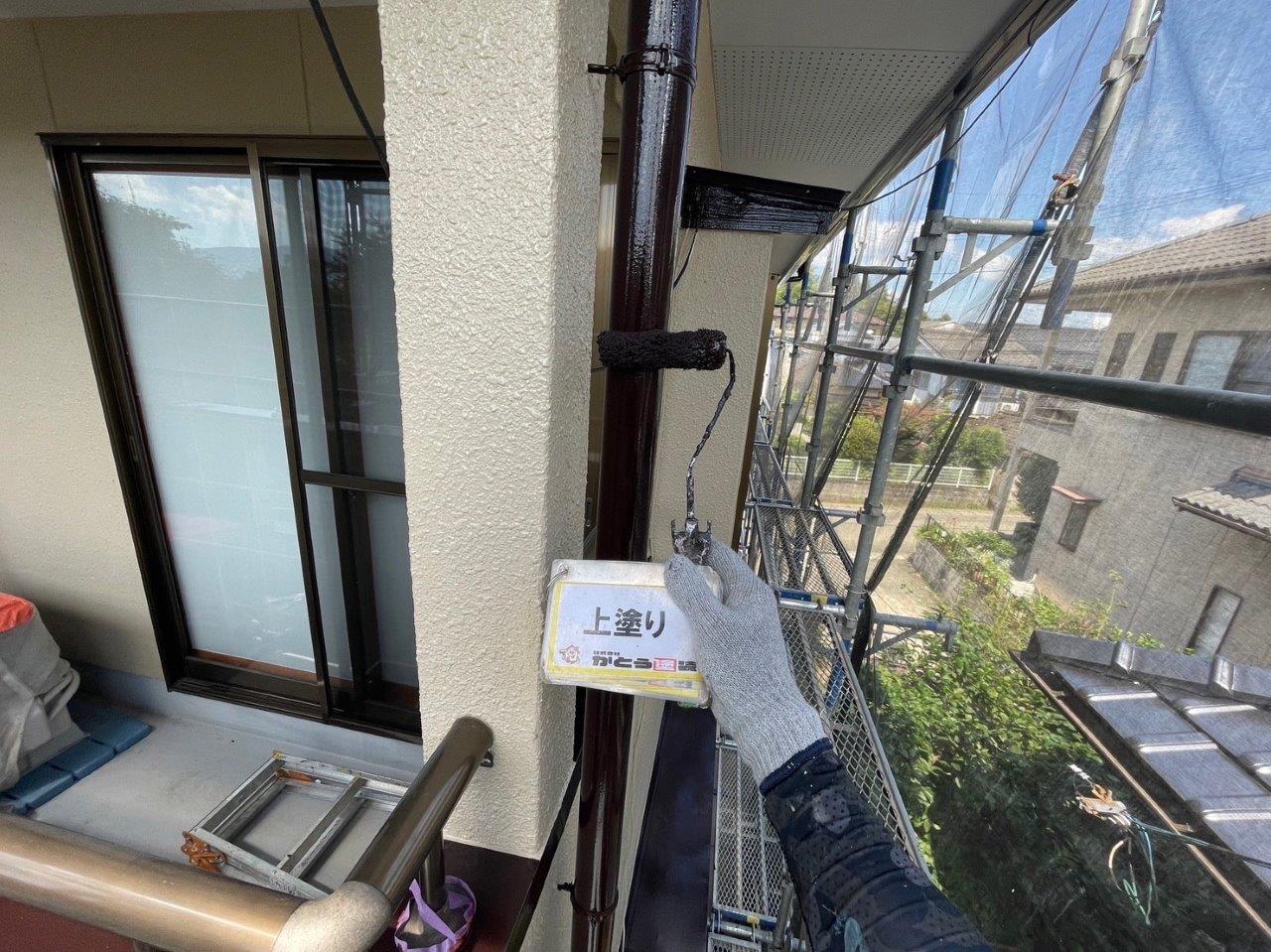 熊本市北区植木町S様邸外壁塗装,屋根瓦の中塗り 上塗り WB工法のC色塗装 付帯部の塗装