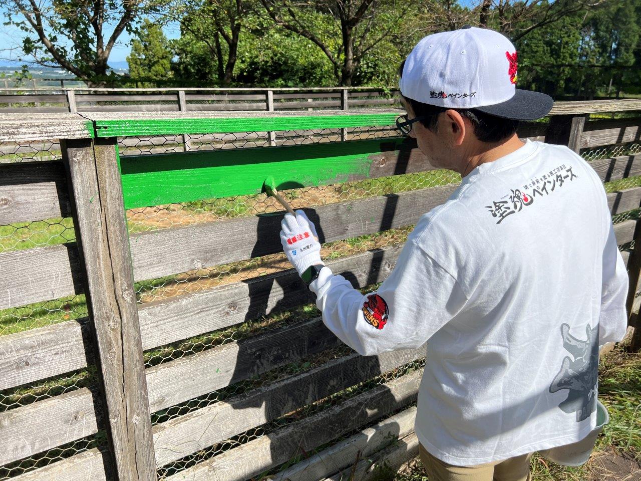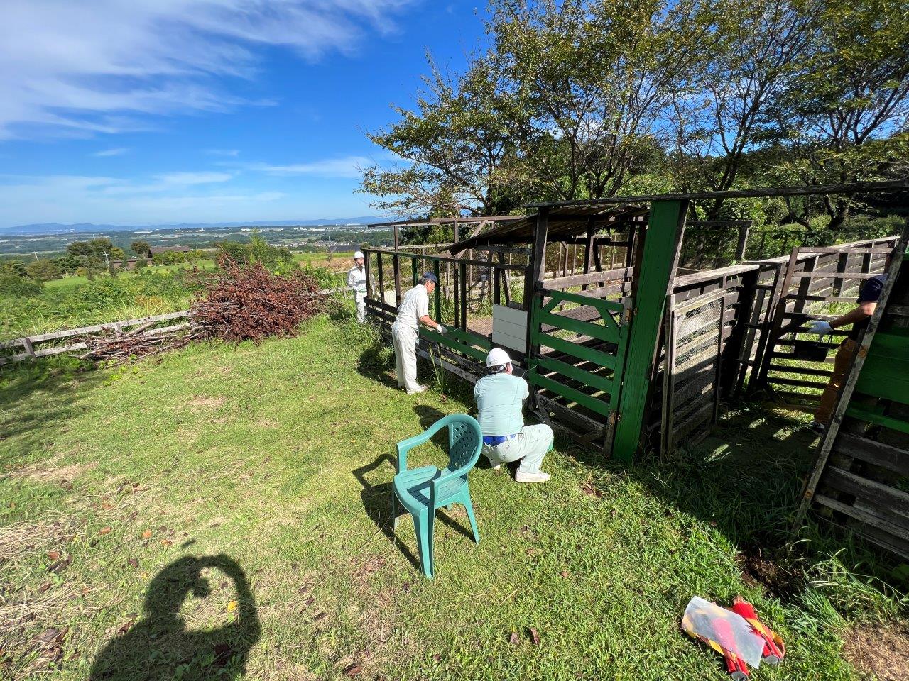 本日、ボランティア塗装にきております。ワンちゃんたちの施設になります。木部を塗装しました。少し暑さで参ってますまだ空調服は必要ですね、(笑)