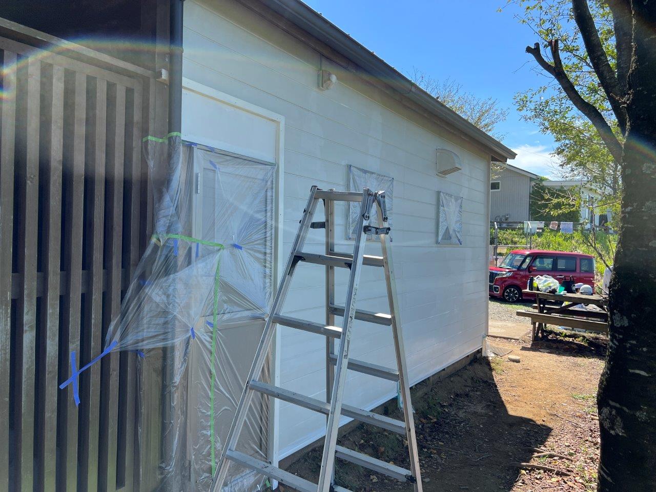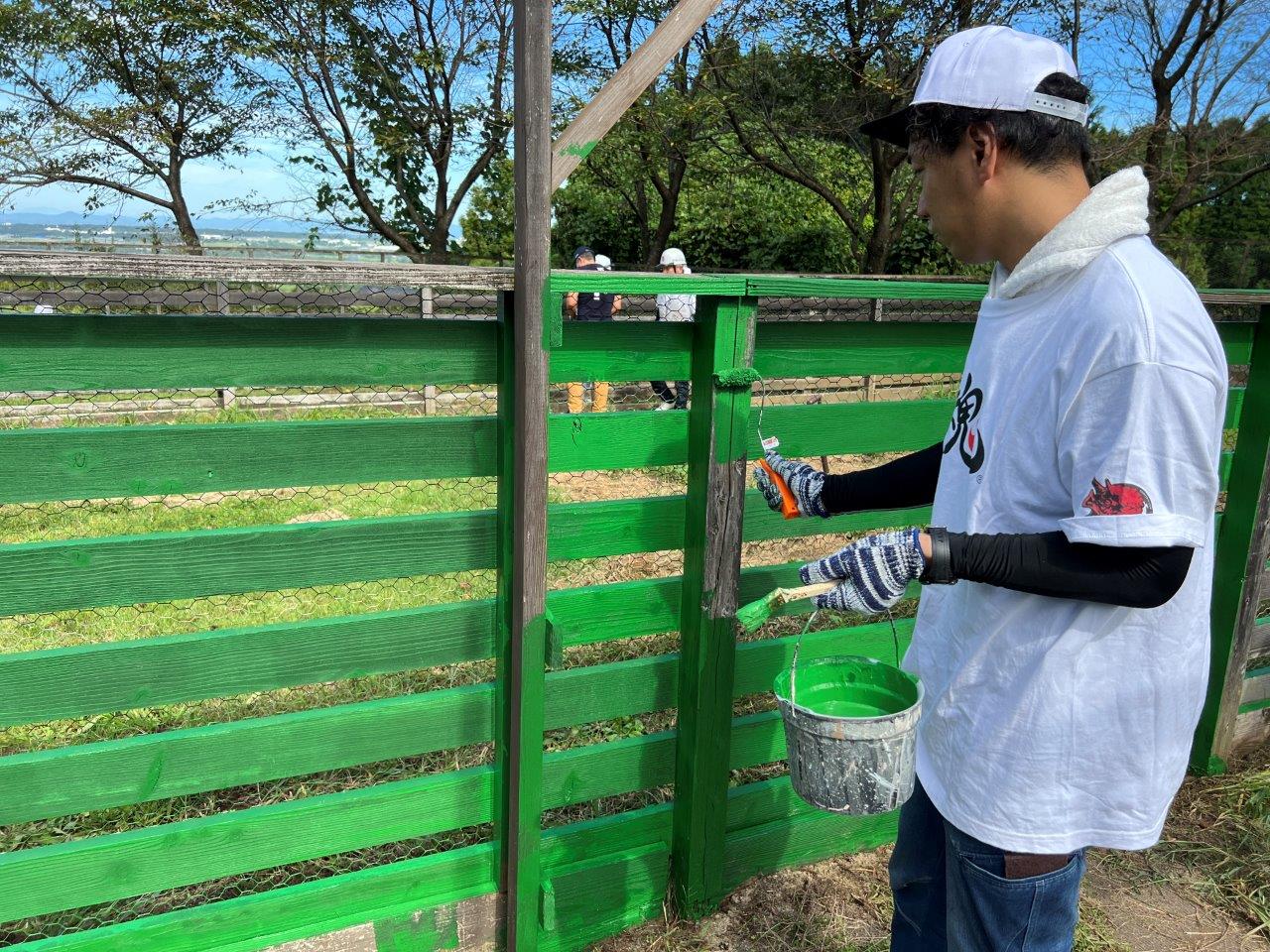 本日、ボランティア塗装にきております。ワンちゃんたちの施設になります。木部を塗装しました。少し暑さで参ってますまだ空調服は必要ですね、(笑)