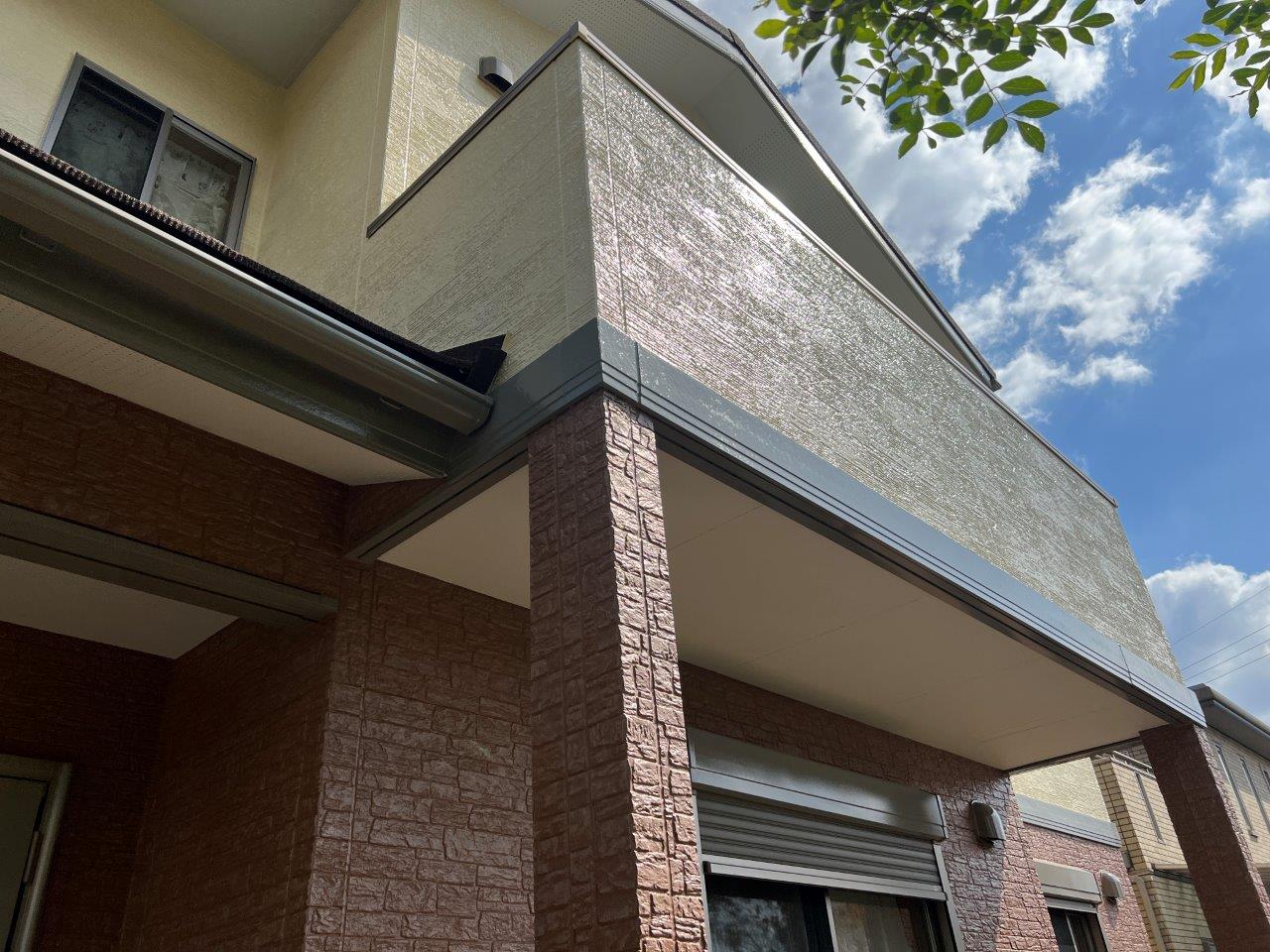 バルコニー部分の外壁は特にいたんでいました。そのため塗装の塗る回数を増やしてより長持ちするように施工しております。