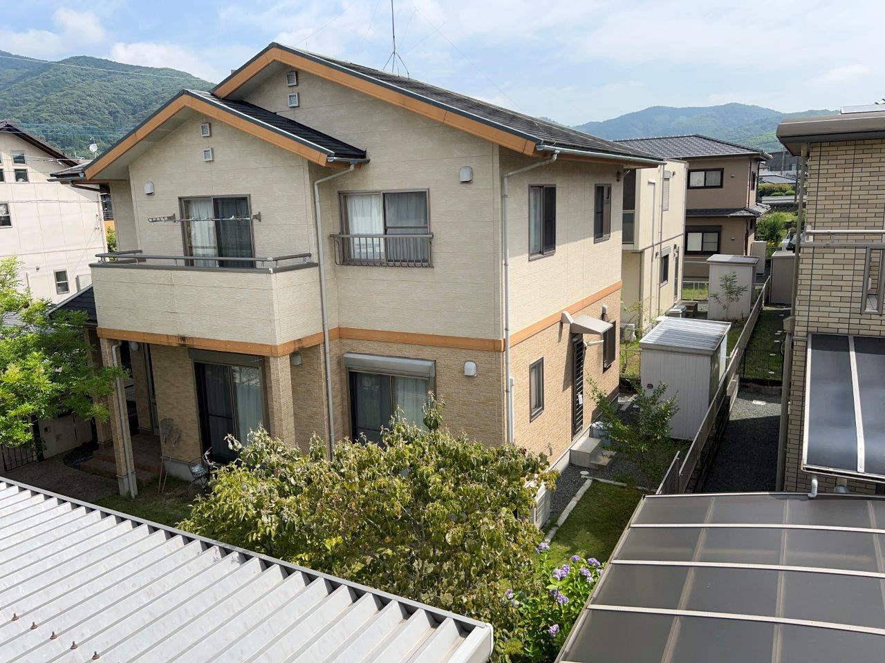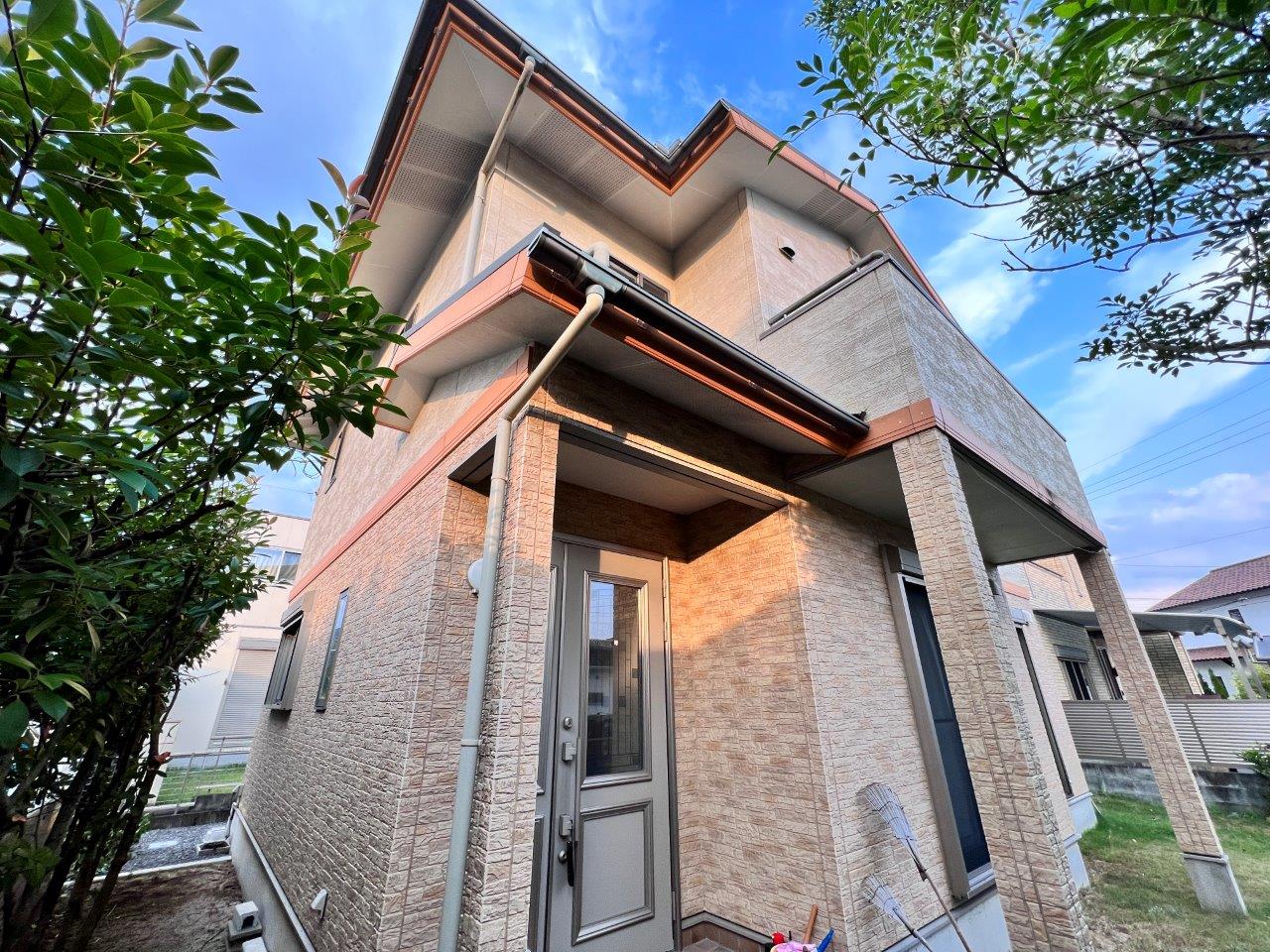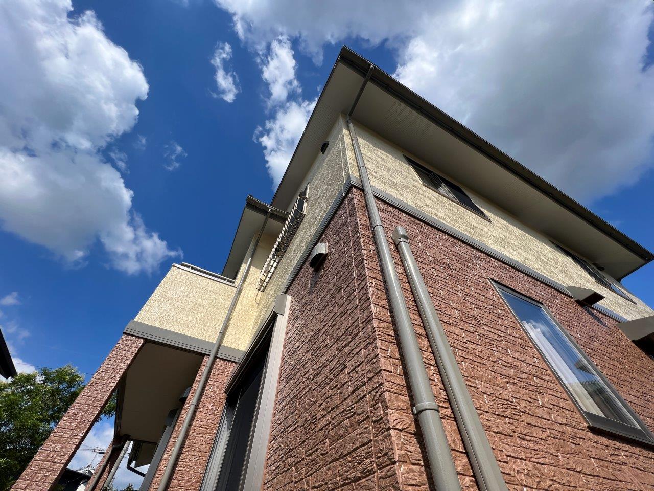 施主様がお屋根の色を黒系の色かいまの色かで迷われましたが、いまのお色で外壁にもマッチしていて素敵だと思います。