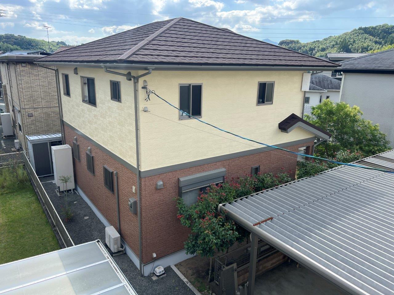玉名市N様邸外壁塗装,屋根カバー工法,無機系塗料仕上げ,WB多彩模様仕上げ完了しました。
