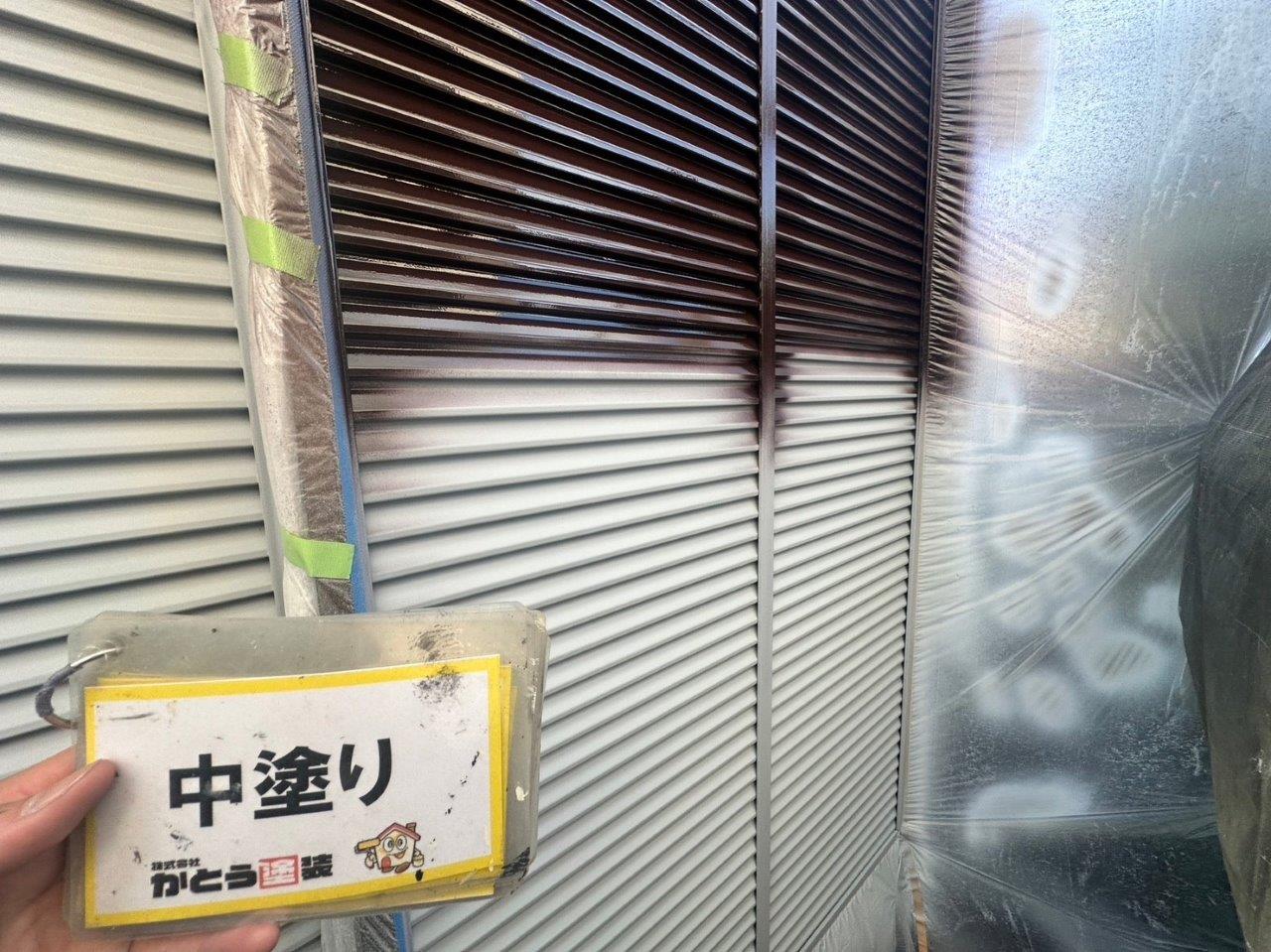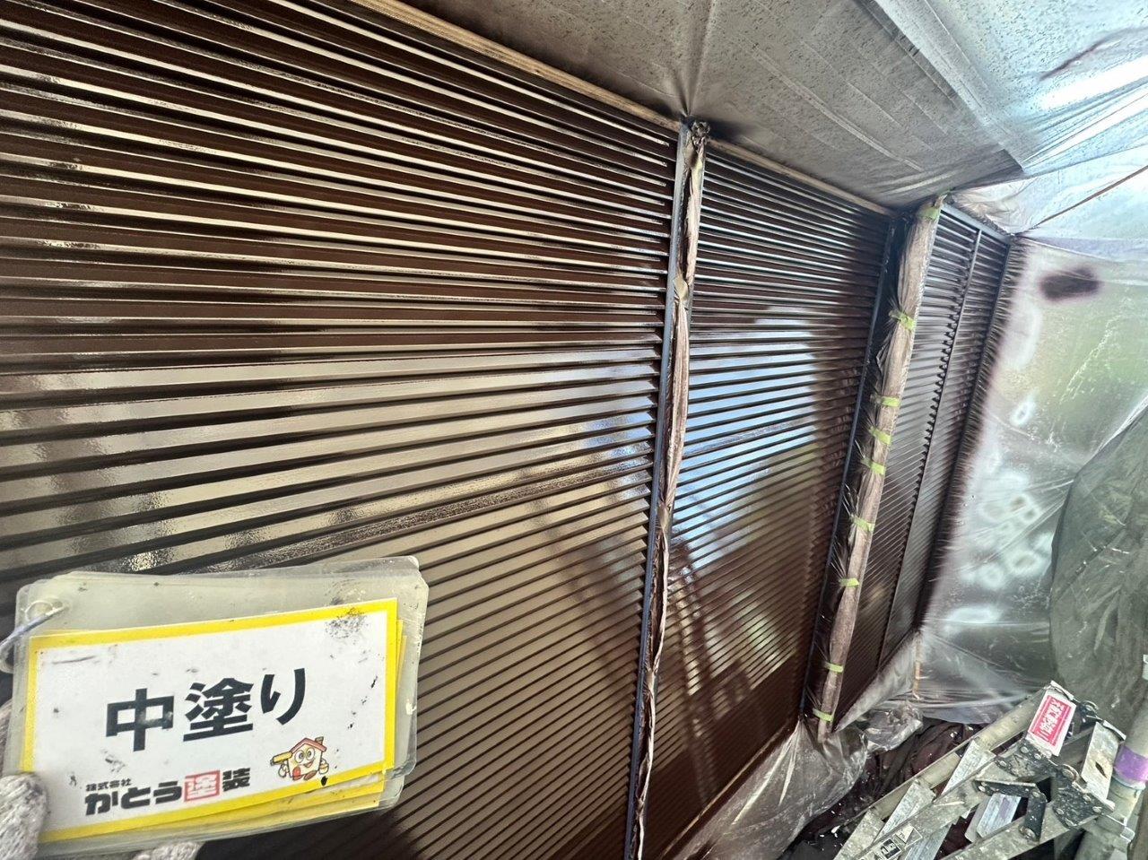 中塗り状況です。使用塗料は4Fフッ素で施行しております。
