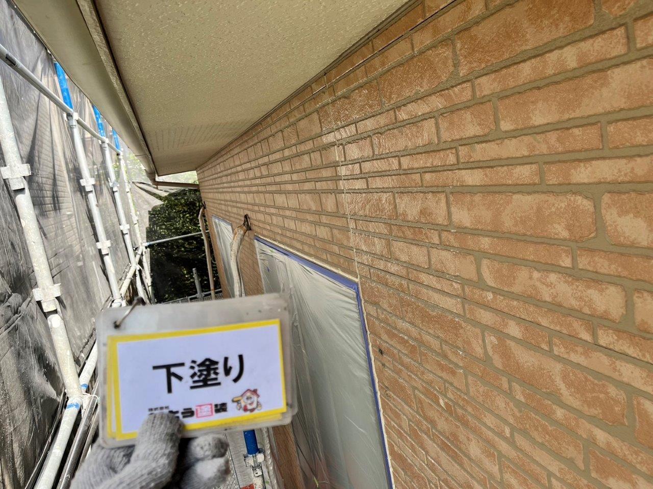 下塗り状況です。浸透性系の下塗り材を使用しております。