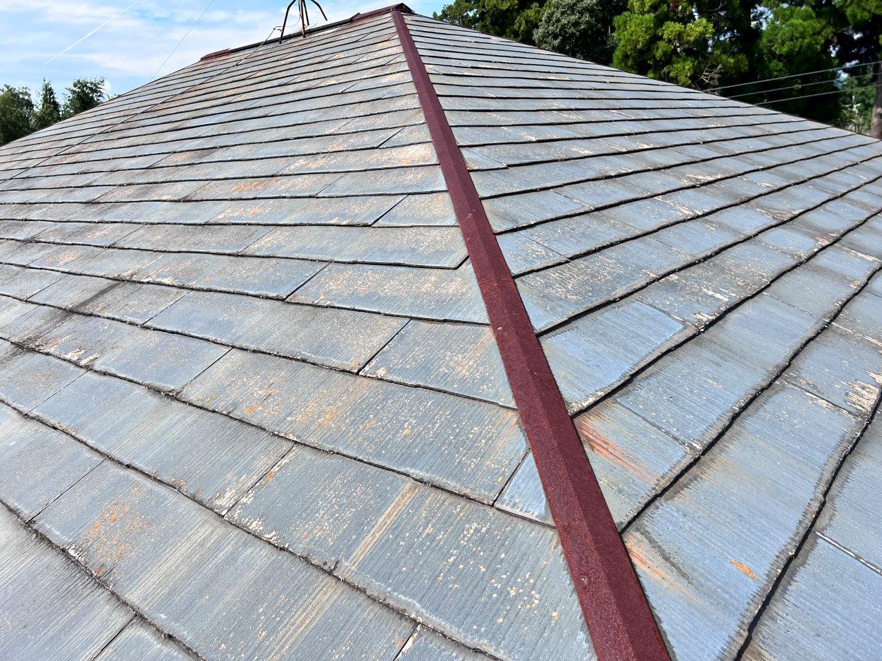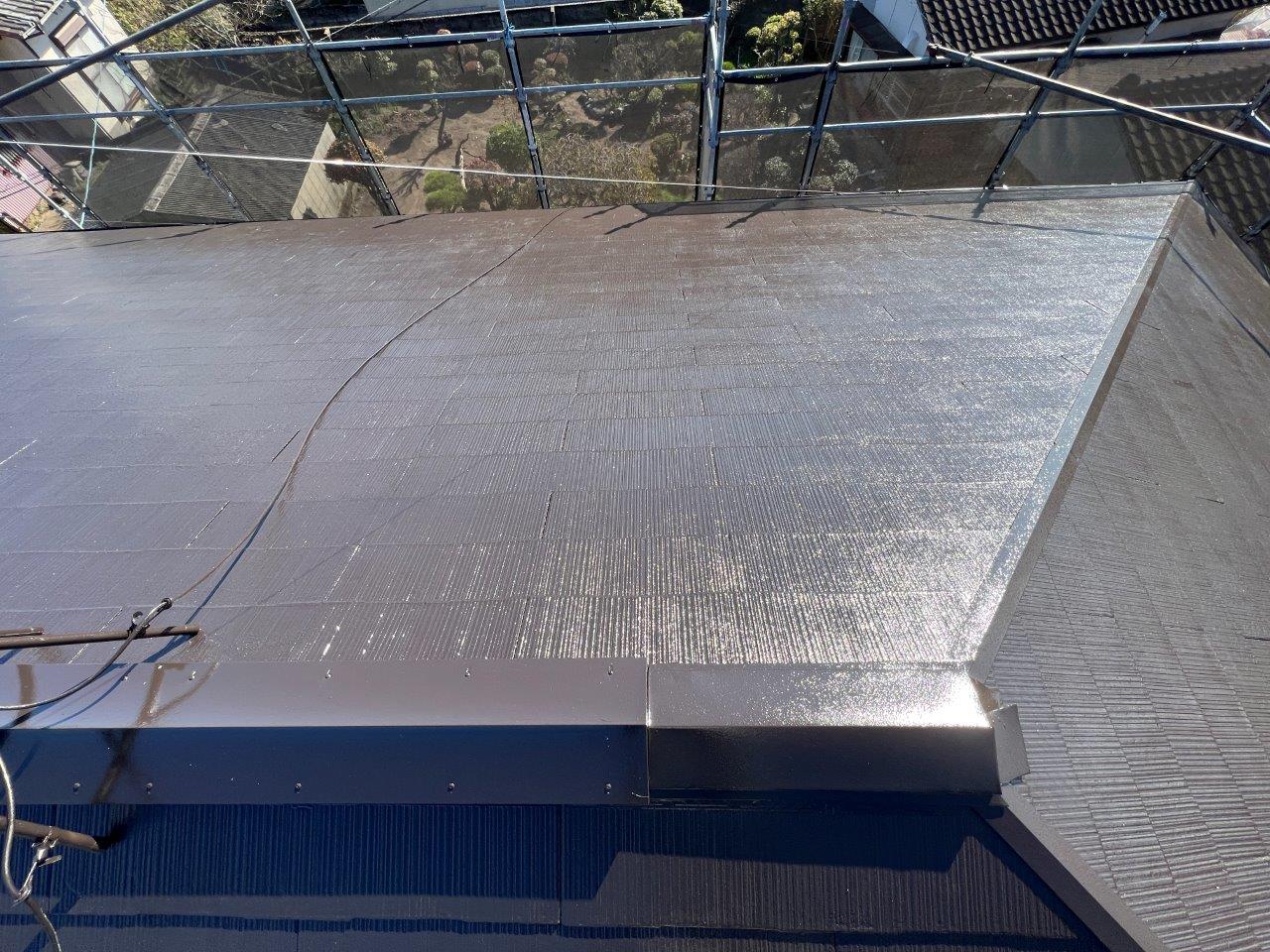 屋根の完了写真です。あんなにいたんでいた屋根が弊社かとう塗装にかかればこのようになります。4回塗りで仕上げました。普通はこのようになりません!痛んだ屋根や初めての塗替え工事では4回塗らないと話になりません!これを2回塗りや1っ回塗りで仕上げる業者がいるんです。